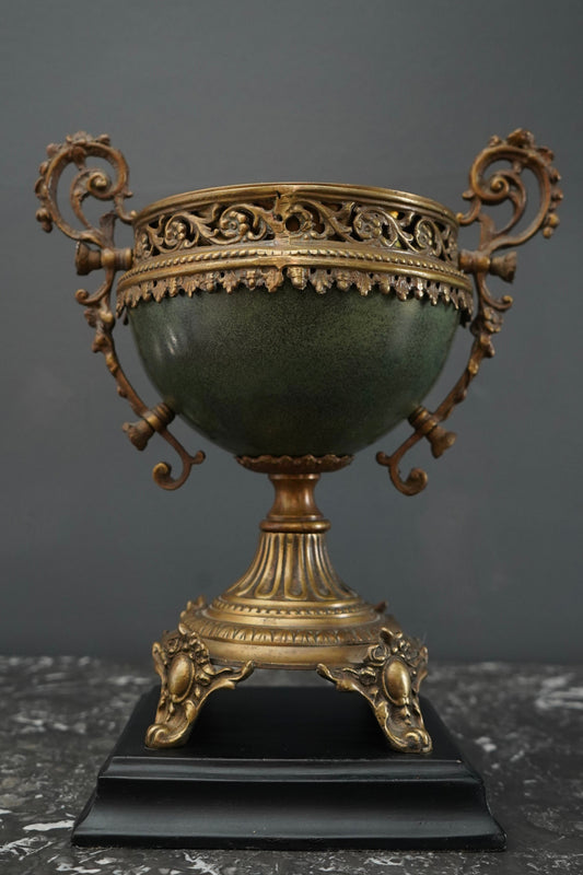 Vintage Neoclassical Decorative Urn with Faux Malachite Bowl and Gilt Metal Mounts