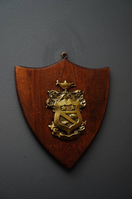 Vintage Kappa Psi Fraternity Brass Crest Plaque on Shield Backing