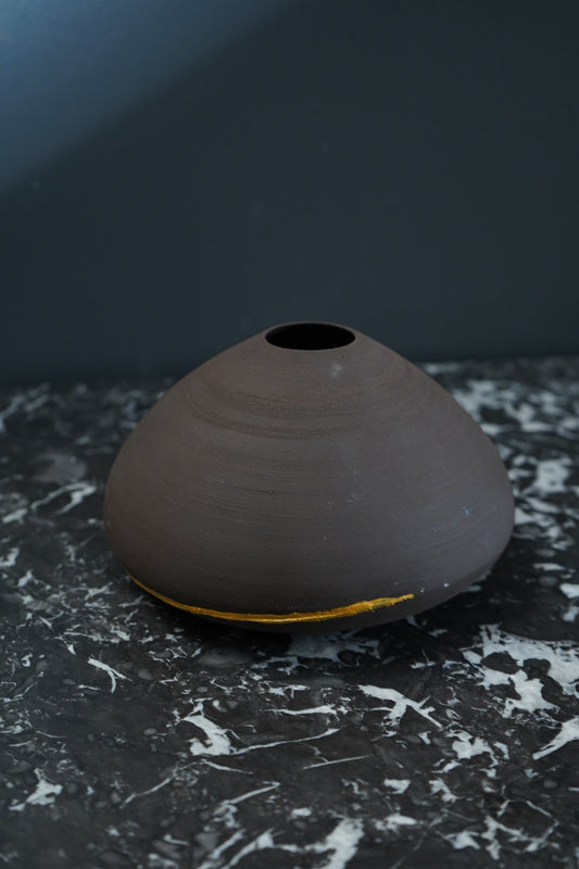 Studio Pottery Vase with Kintsugi-Style Gilded Repair | Signed by Artist, Organic Modern Form