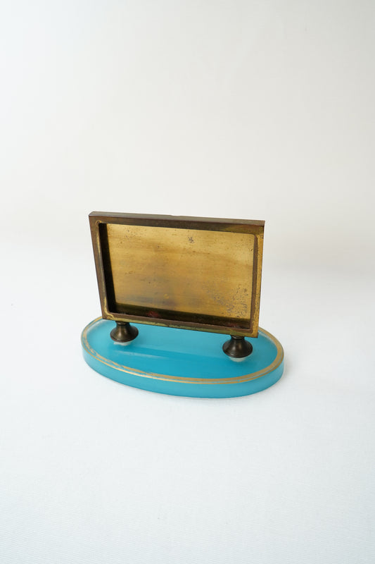 Vintage Brass And Blue Glass Mounted Miniature Frame