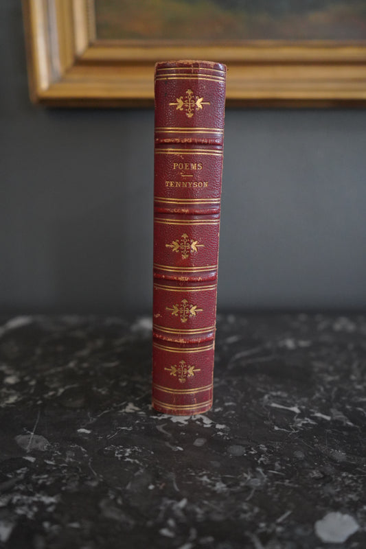 1875 "Poems" by Alfred Tennyson Red Fine Binding Full Leather Book, Antique Poetry Book