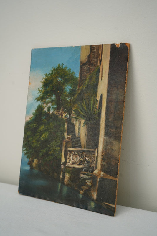 Early 20th Century Italian Lakeside Oil Painting on Board, Cabinet Scale