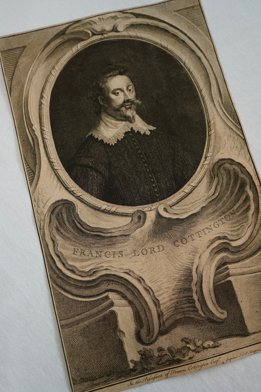 Antique Houbraken Engraving Portrait “Francis, Lord Cottington” Published 1744 | 9 x 14.75