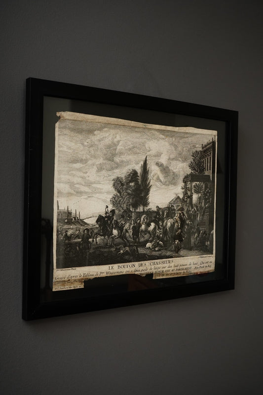 Antique French Engraving Le Bouton des Chasseurs