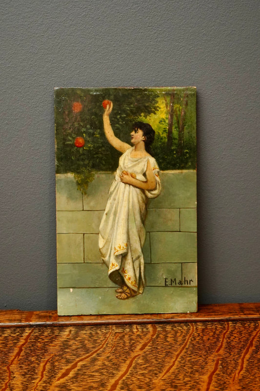 Antique Oil on Board Painting Classical Woman with Oranges Signed