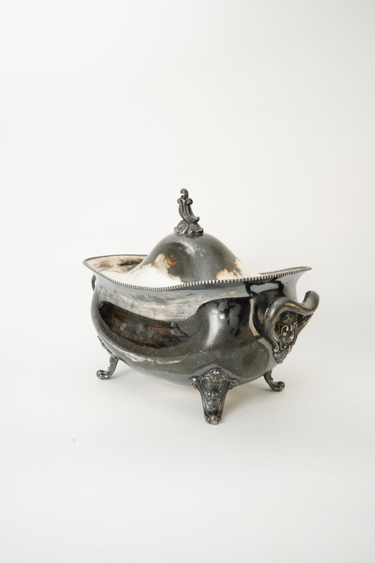 Antique Meriden Silver Plate Covered Tureen Serving Dish with Claw Feet