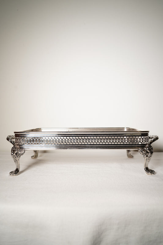 Antique Silver Plated Casserole Dish Holder Stand with Pierced Gallery