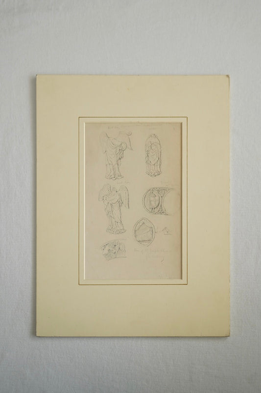 19th-Century Architectural Drawing Attributed to Henry Shaw | Angelic Figures & Glastonbury Chapel Ornament