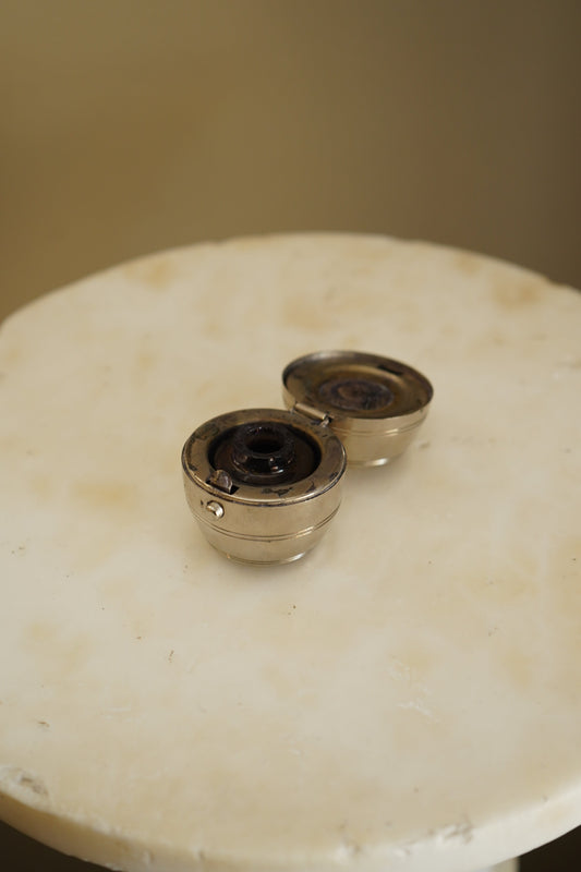 Antique Silver Plated Barrel Travel Inkwell with Glass Liner | Victorian to Edwardian Era Portable Ink Pot