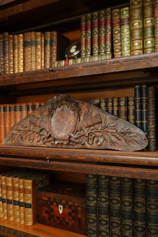 Antique French Bronze Overdoor Pediment with Louis XVI Cartouche | French Bronze Architectural Salvage