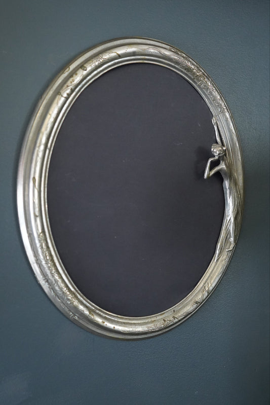 Art Nouveau Silver Plated Oval Frame with Lady and Floral Motif, Circa 1900