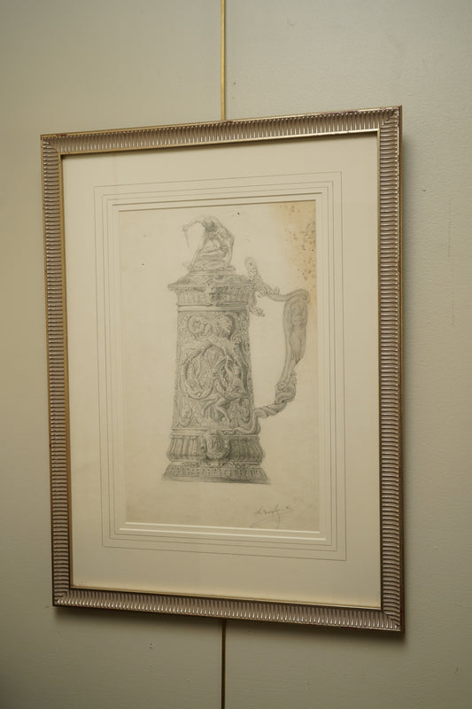 Henry Bouvet (French, 1859–1945) – Study of a Tankard, Signed Pencil Drawing on Paper, Framed