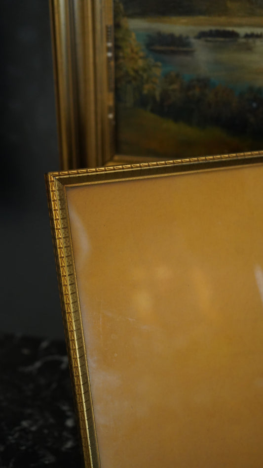Gold Plated Picture Frame with Geometric Border | Vintage Brass Picture Frame