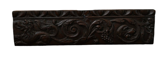 Antique Carved Oak Drawer Front | Renaissance Revival Lion, Grapevine & Acanthus | Architectural Salvage Wall Plaque c.1870–1900