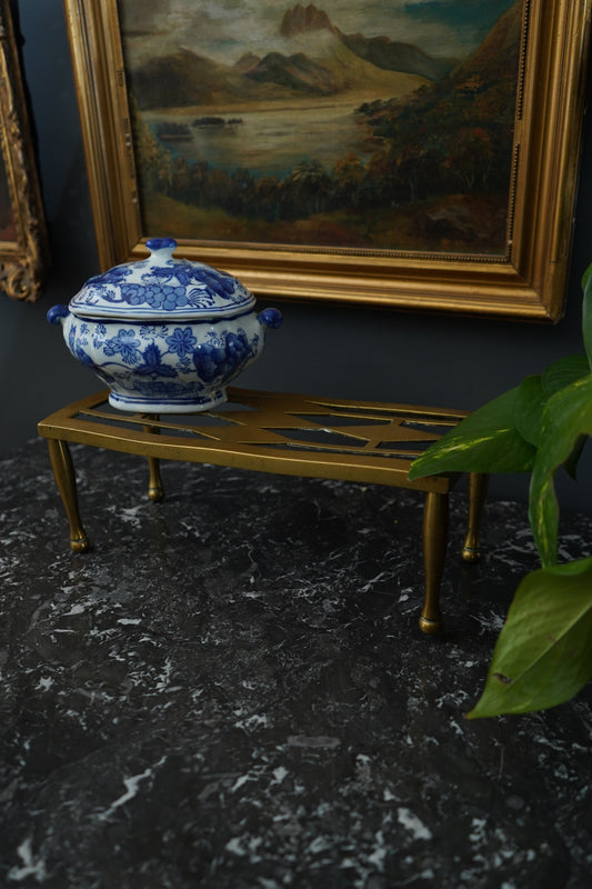 Antique Brass Footman Trivet Stool – Pierced Geometric Hearth Stand