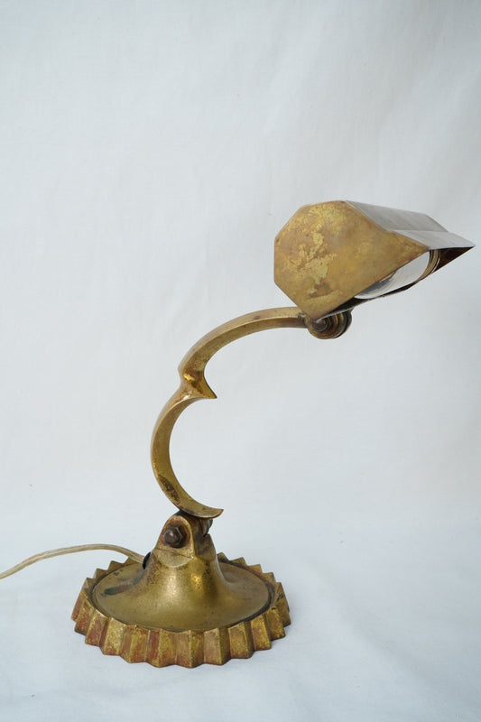 Vintage Brass Adjustable Desk Lamp with Art Deco Profile