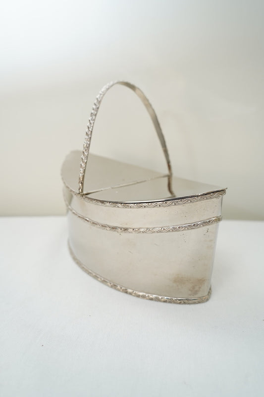 Antique Silver Plate Two Compartment Handled Caddy with Hinged Lids