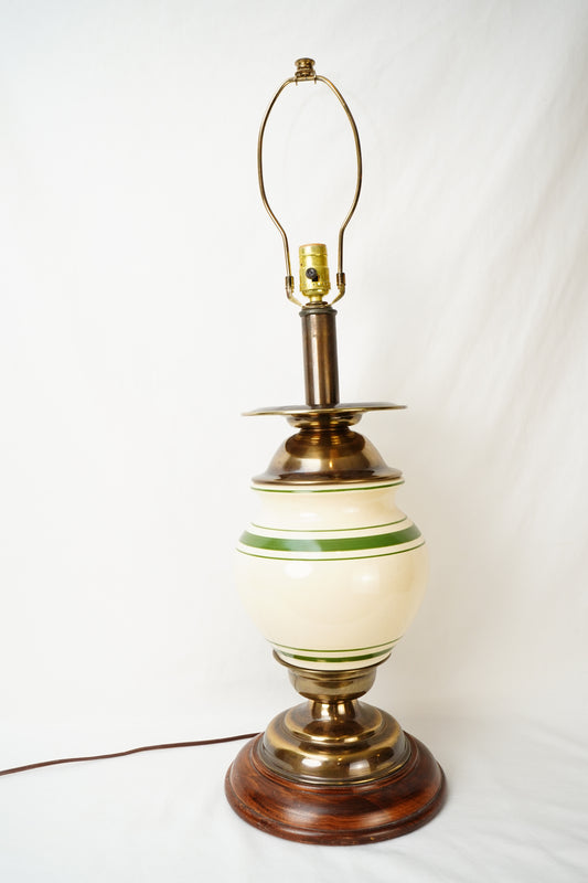 Vintage Cream Porcelain Lamp with Green Banding