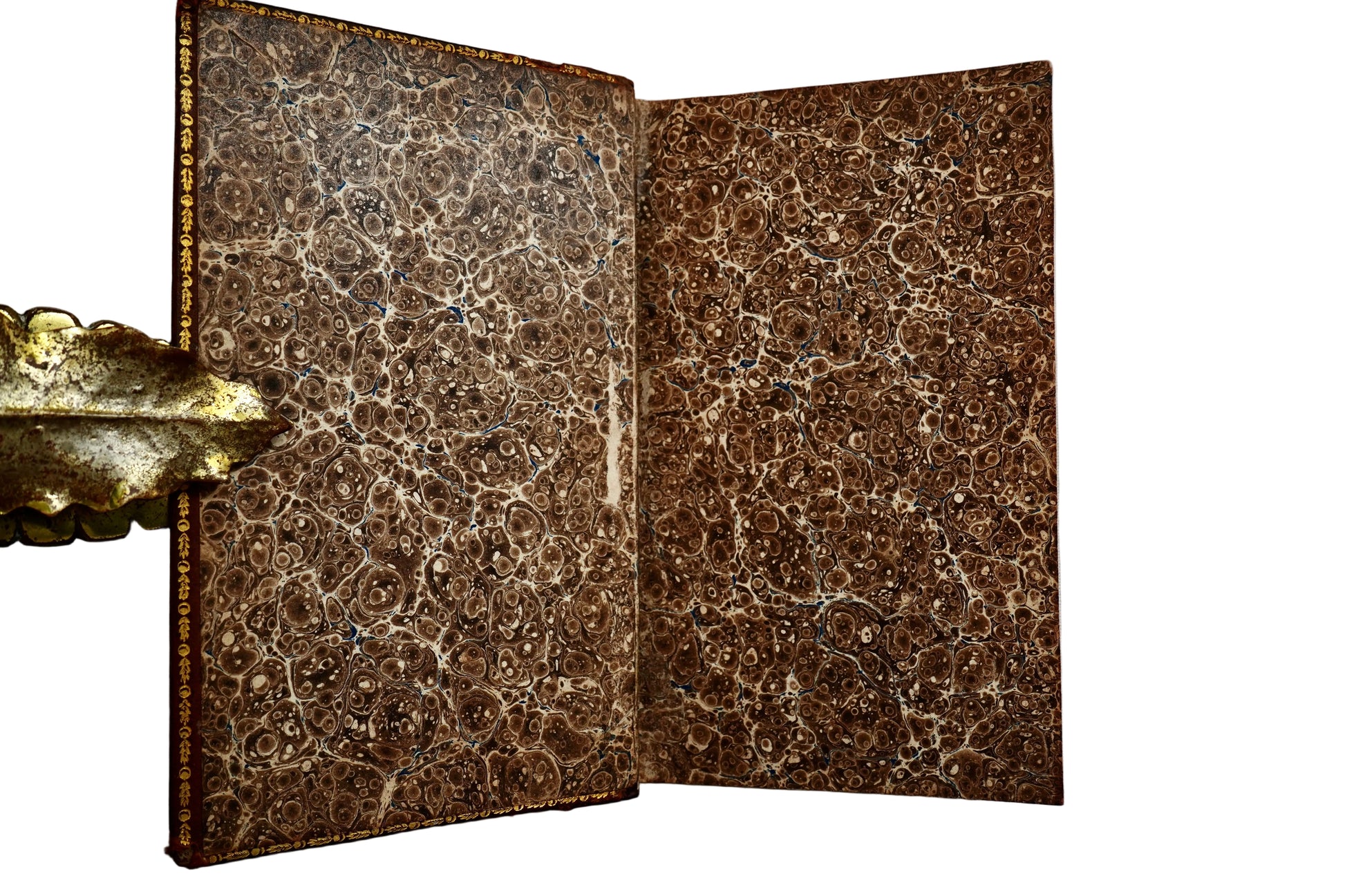 Binding: Full leather binding with tooled crosshatch pattern and gilt decoration