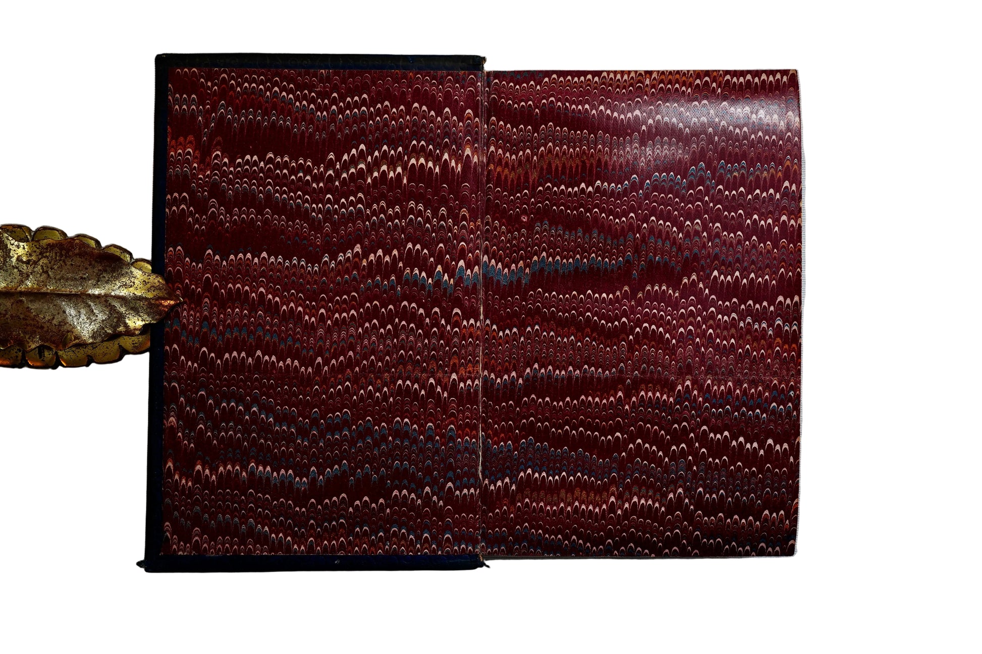 Features: Gilt-tooled decorative spine, red spine title label, gilt border framing on boards, marbled endpapers, marbled text block edges