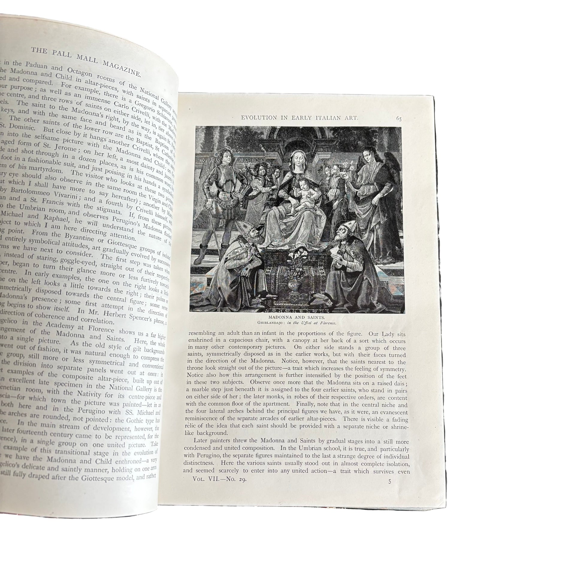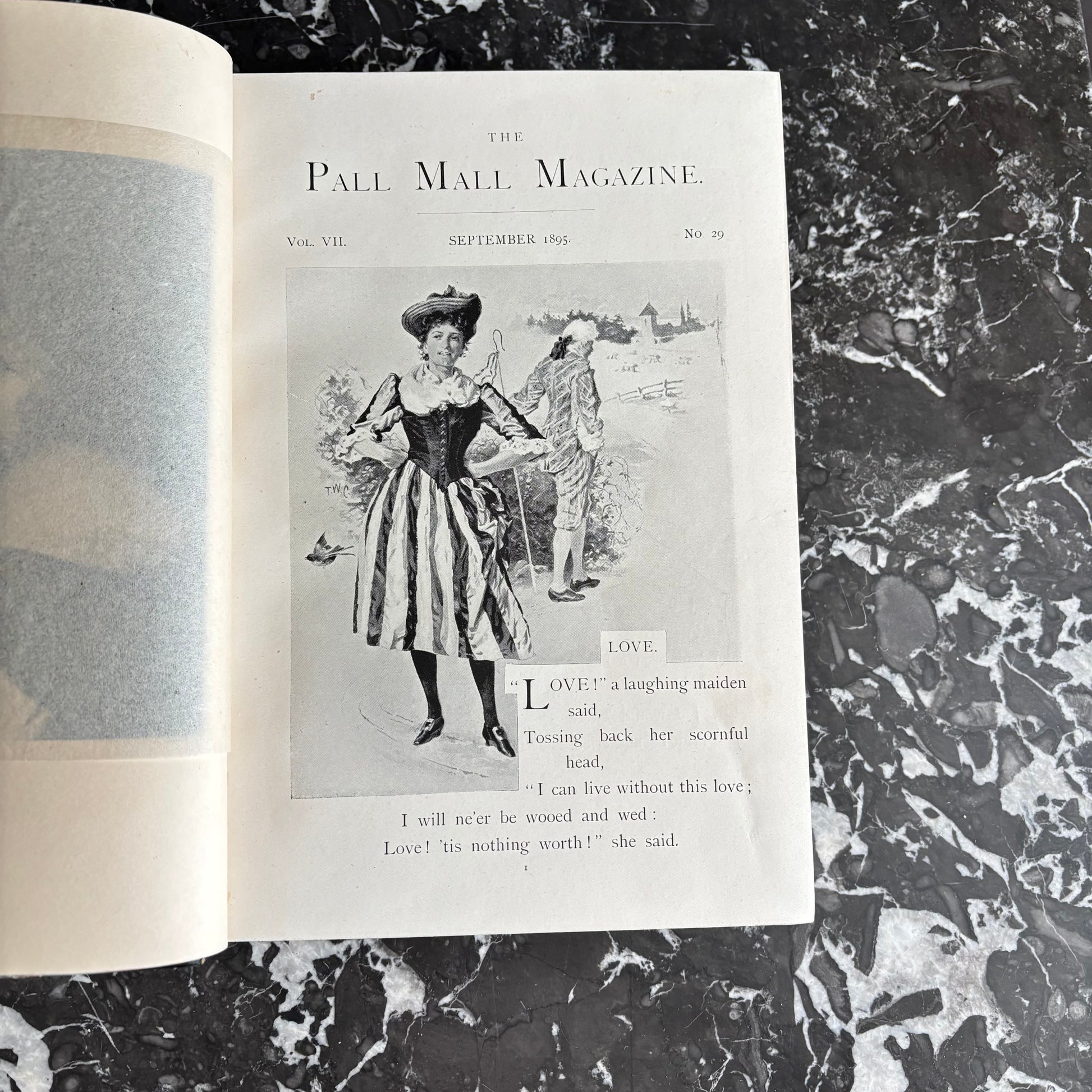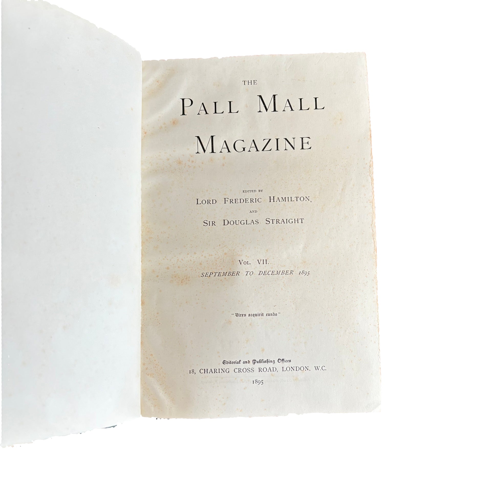 This handsome two-volume set of The Pall Mall Magazine captures the spirit of Victorian literary and artistic culture. Published in London in 1895 and 1896, these bound editions (Volumes VII and IX) feature a rich mix of serialized fiction, essays, travel narratives, poetry, and finely executed illustrations. Edited by Lord Frederic Hamilton and Sir Douglas Straight, The Pall Mall Magazine was one of the leading illustrated journals of the late 19th century, rivaling The Strand in quality and readership. Its pages carried contributions from celebrated authors, along with essays on science, exploration, and art that reflected the intellectual curiosity of the Victorian age.