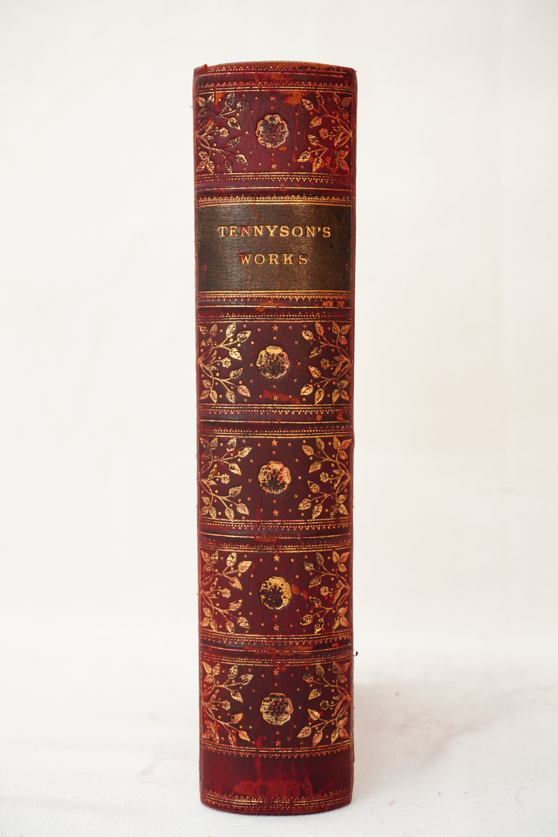 Published in 1899 by Macmillan and Co., Limited (London) with The Macmillan Company (New York), this handsome vintage volume gathers the celebrated Victorian poetry of Alfred, Lord Tennyson, Poet Laureate, in a single, display worthy book that reads like a greatest hits of 19th century English literature. Inside you will find many of the poems that shaped the Victorian imagination, including beloved classics like “The Lady of Shalott,” “The Kraken,” and more from his early and mature work, all presented in a clean, elegant Macmillan format with a portrait frontispiece. Tennyson wrote in an era obsessed with beauty, progress, and big questions about faith, doubt, and the modern world, and his poems became the soundtrack of the age, quoted in parlors, schools, and newspapers across the English speaking world. What really makes this copy pop for collectors and decor lovers is the rich red leather binding with an ornate gilt tooled spine, gilt ruled borders, and dramatic marbled endpapers that feel like a little piece of art every time you open the cover, plus a gilt monogram to the board that adds a custom, old world library look. It is a strong choice for anyone building a classic poetry shelf, a moody Victorian vignette, or a curated library display with real presence.