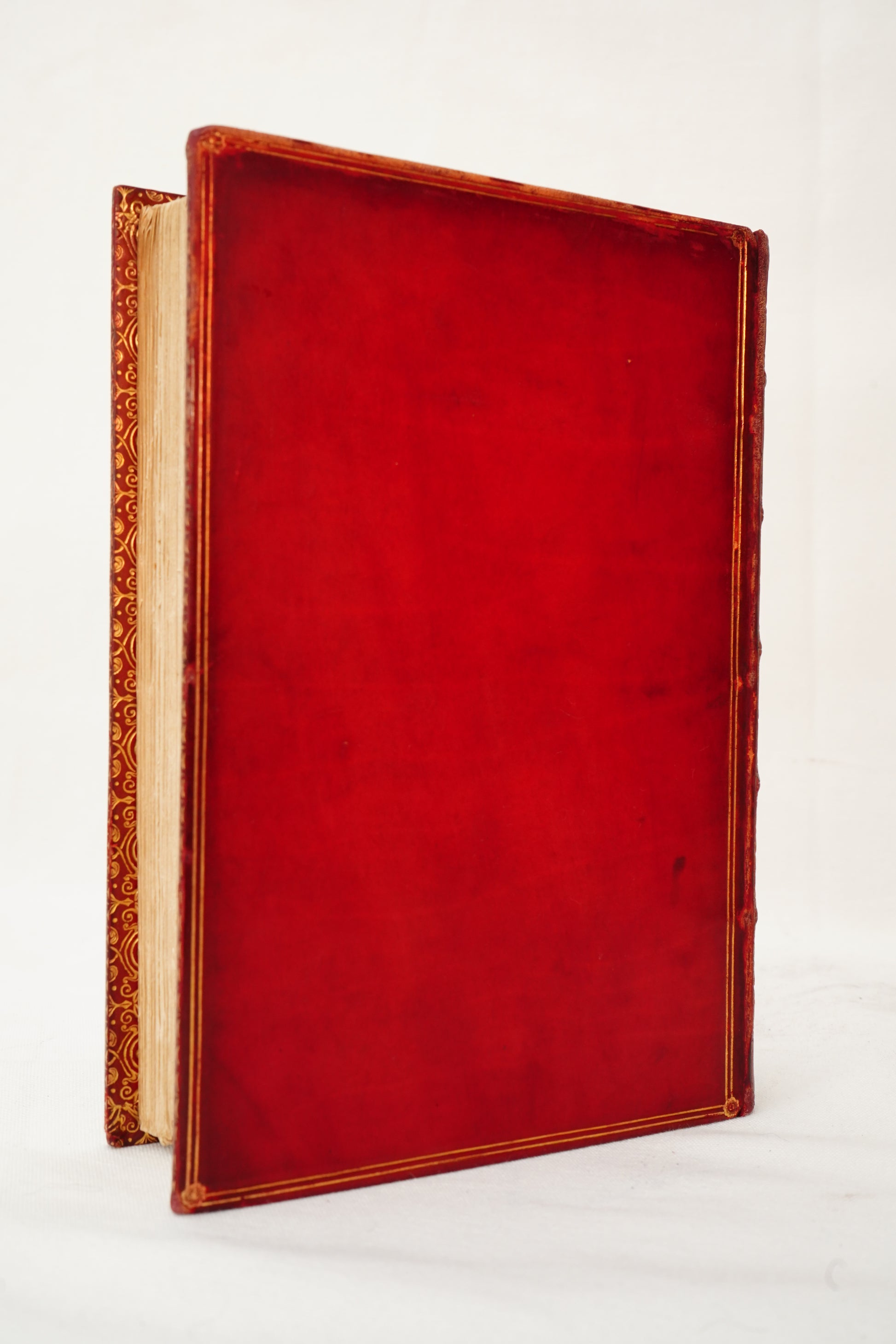 Binding: Full red leather binding with gilt tooled spine and raised bands