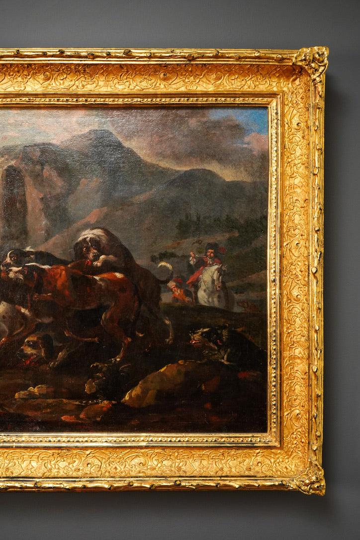 Paintings like this were not just decoration. They were signals of status. Commissioned for grand salons, libraries, and country estates, hunt scenes celebrated the patron’s world, where leisure and power were closely linked. This work carries that idea through its sense of movement and tension, and through the way the hunt is staged as an event rather than a simple animal encounter.