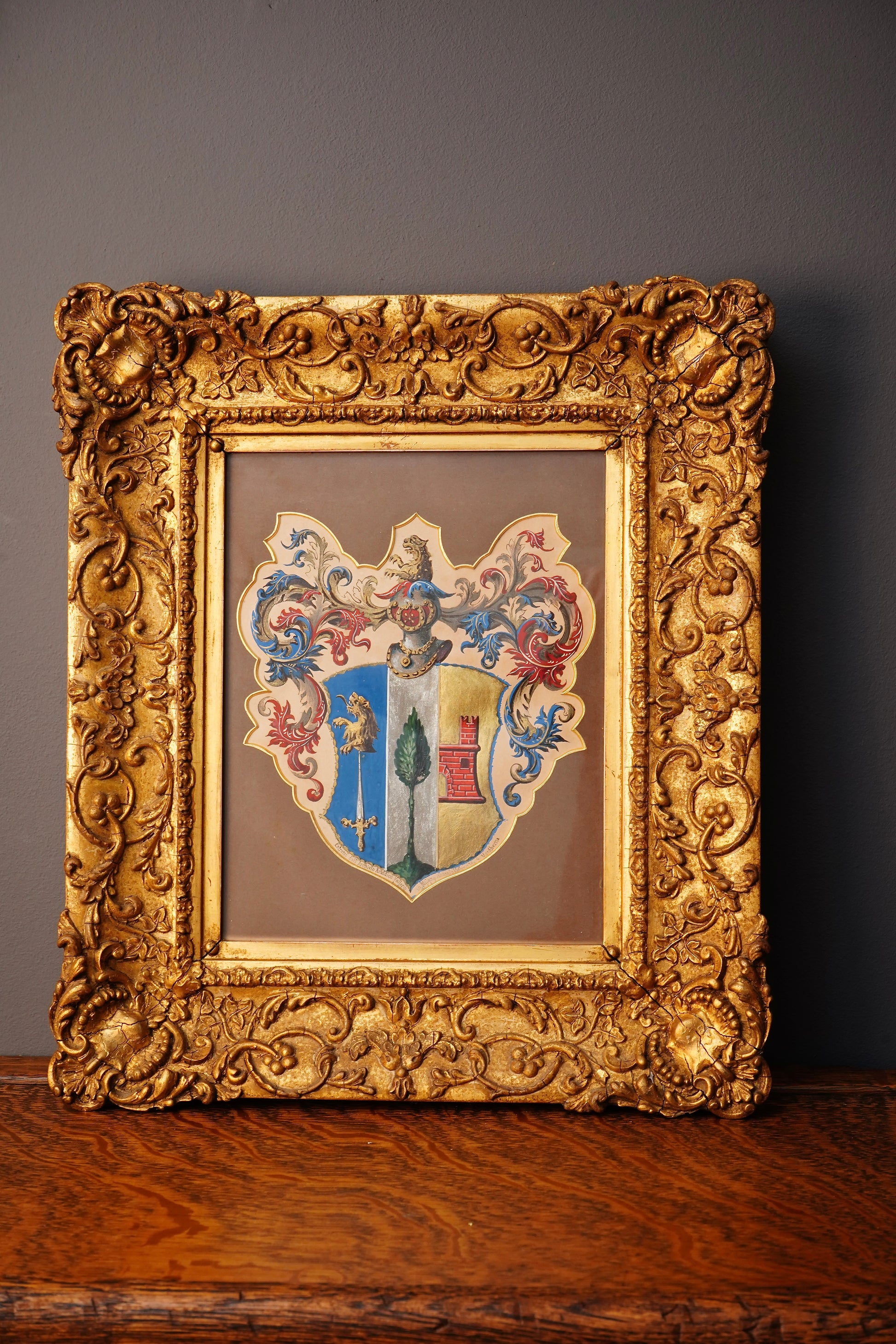 Antique 19th Century Heraldic Coat of Arms in Ornate Gilt Frame