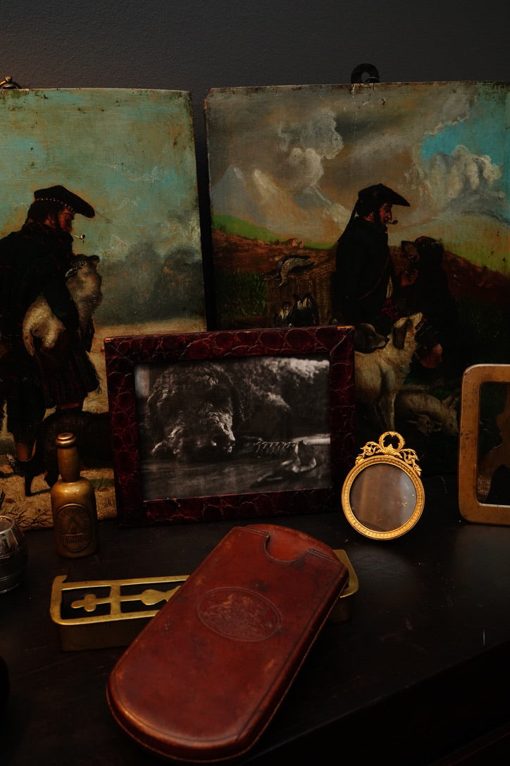 This example has great presence at nearly 7 inches wide, larger than many modern dollhouse accessories, and the warm, timeworn brass patina gives it that unmistakable antique character. A wonderful find for miniature collectors, English interiors enthusiasts, and anyone styling a library, mantle, or dark academia shelf.