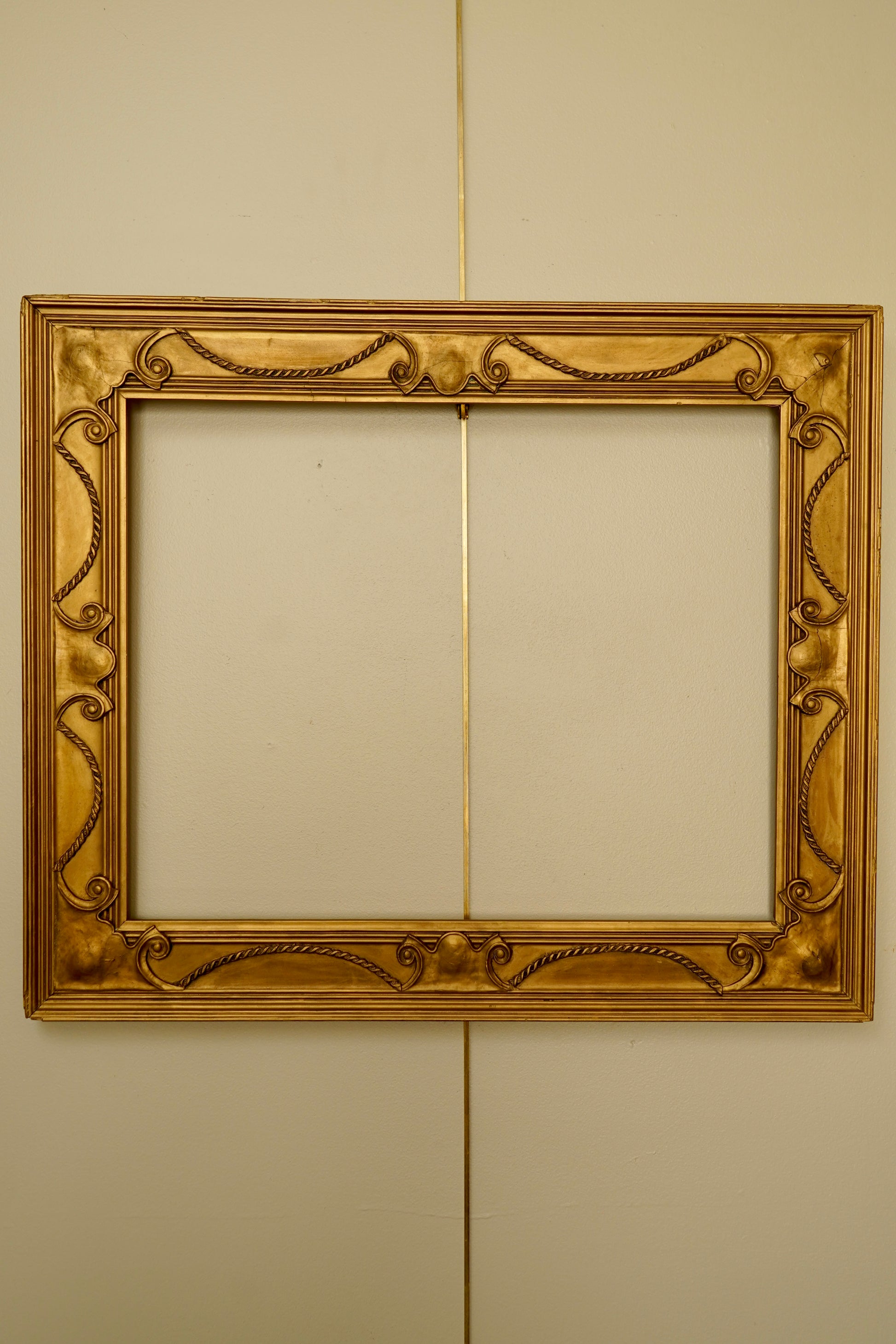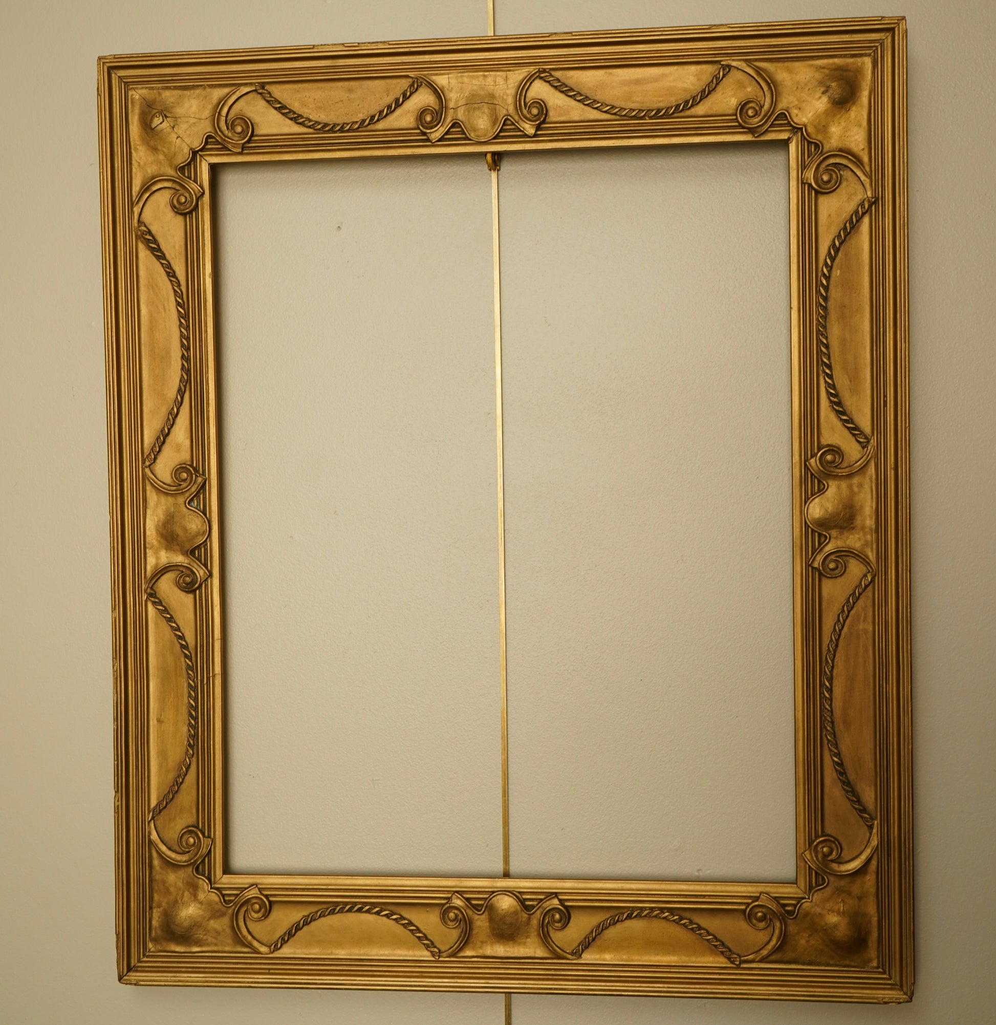 Measuring 25.5" W x 21.5" H externally with a 20" W x 16" H sight size, this frame is well-suited for a portrait, still life, or mirror. The gilding retains its warm antique patina with gentle wear consistent with age. Its timeless design makes it equally compelling for traditional artwork or as a decorative architectural element in modern interiors.