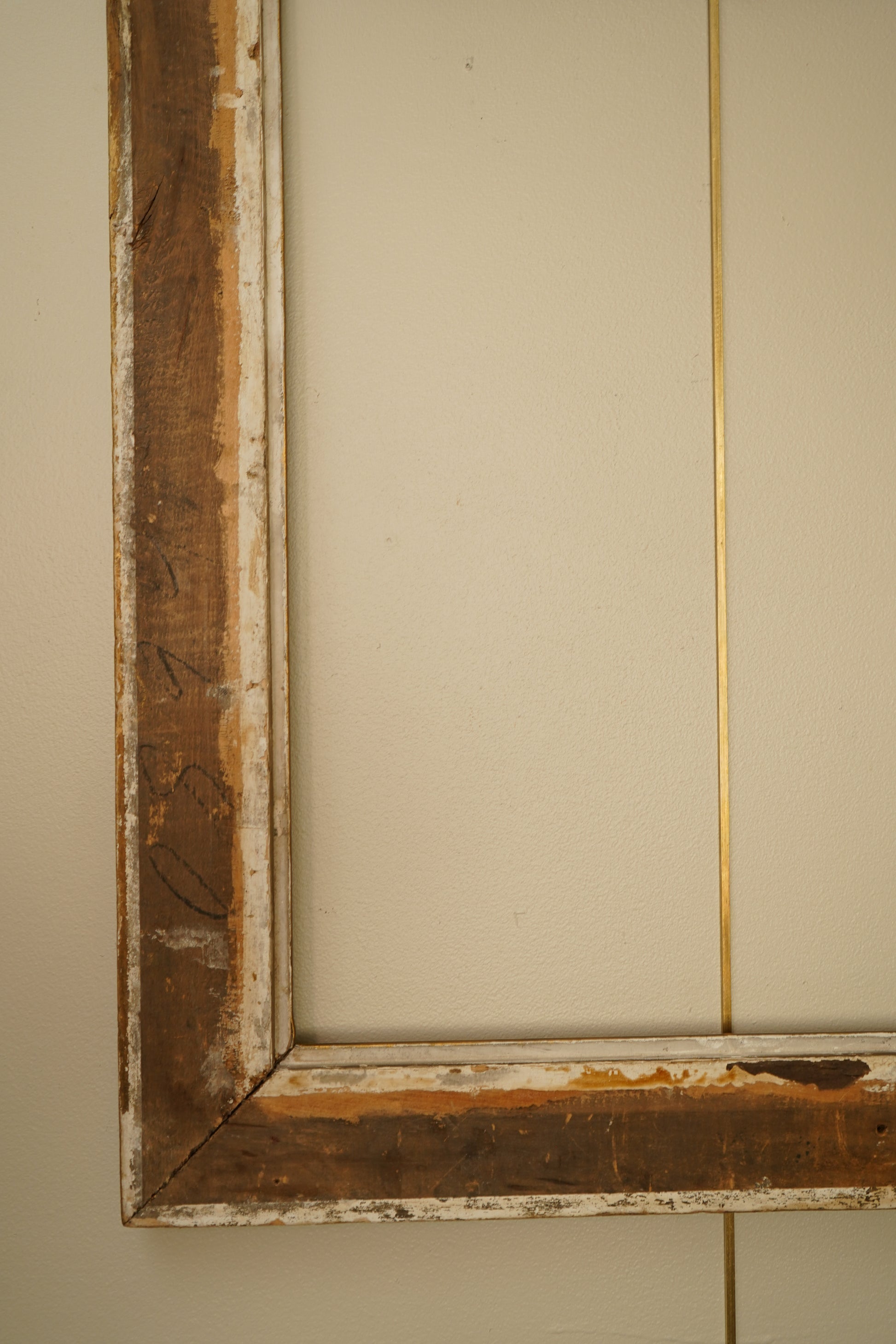 The frame is structurally sound with original gilding throughout. Light rubbing, edge wear, and surface imperfections are present, consistent with age and use. Back shows exposed wood and remnants of old paint, confirming authenticity. Overall excellent presentation.