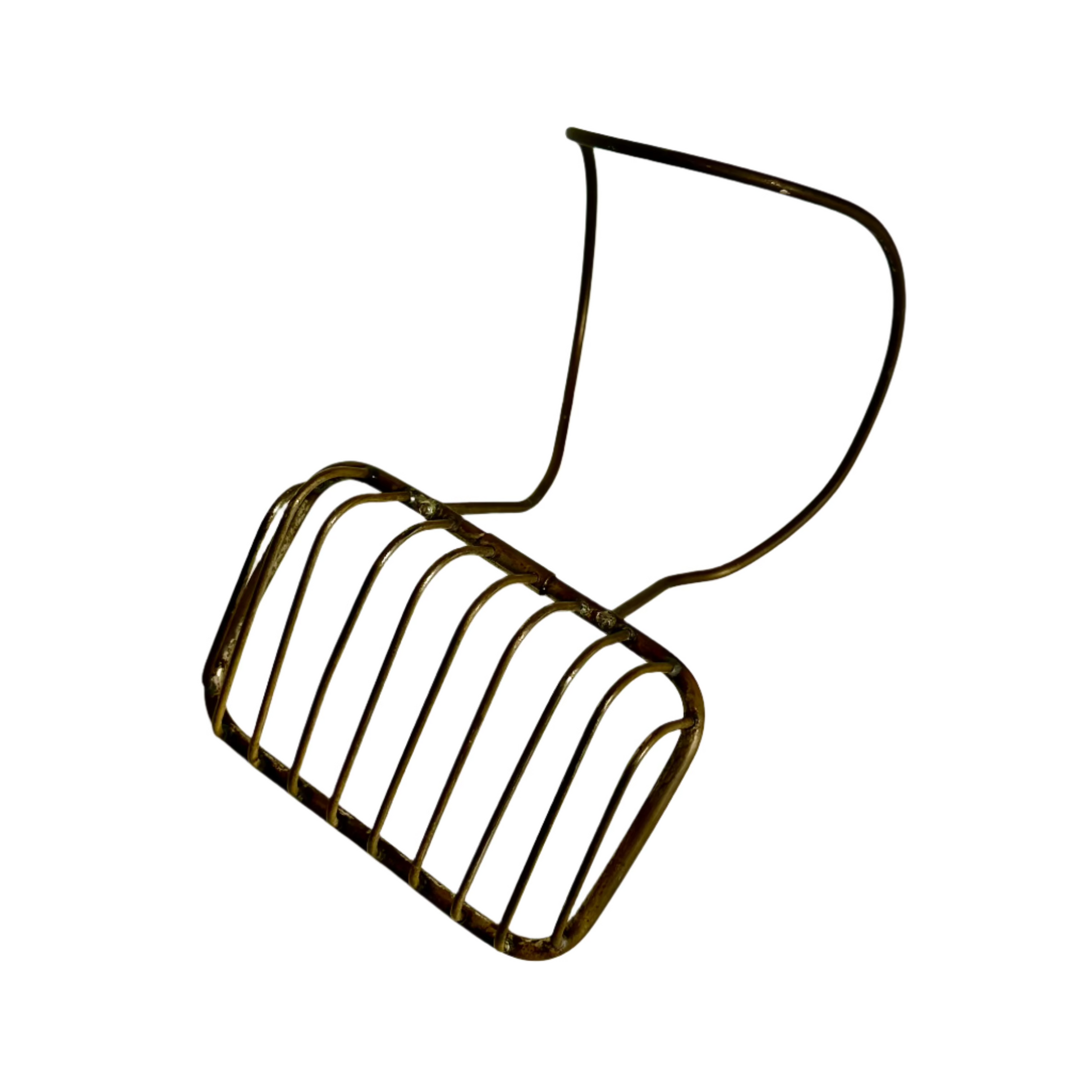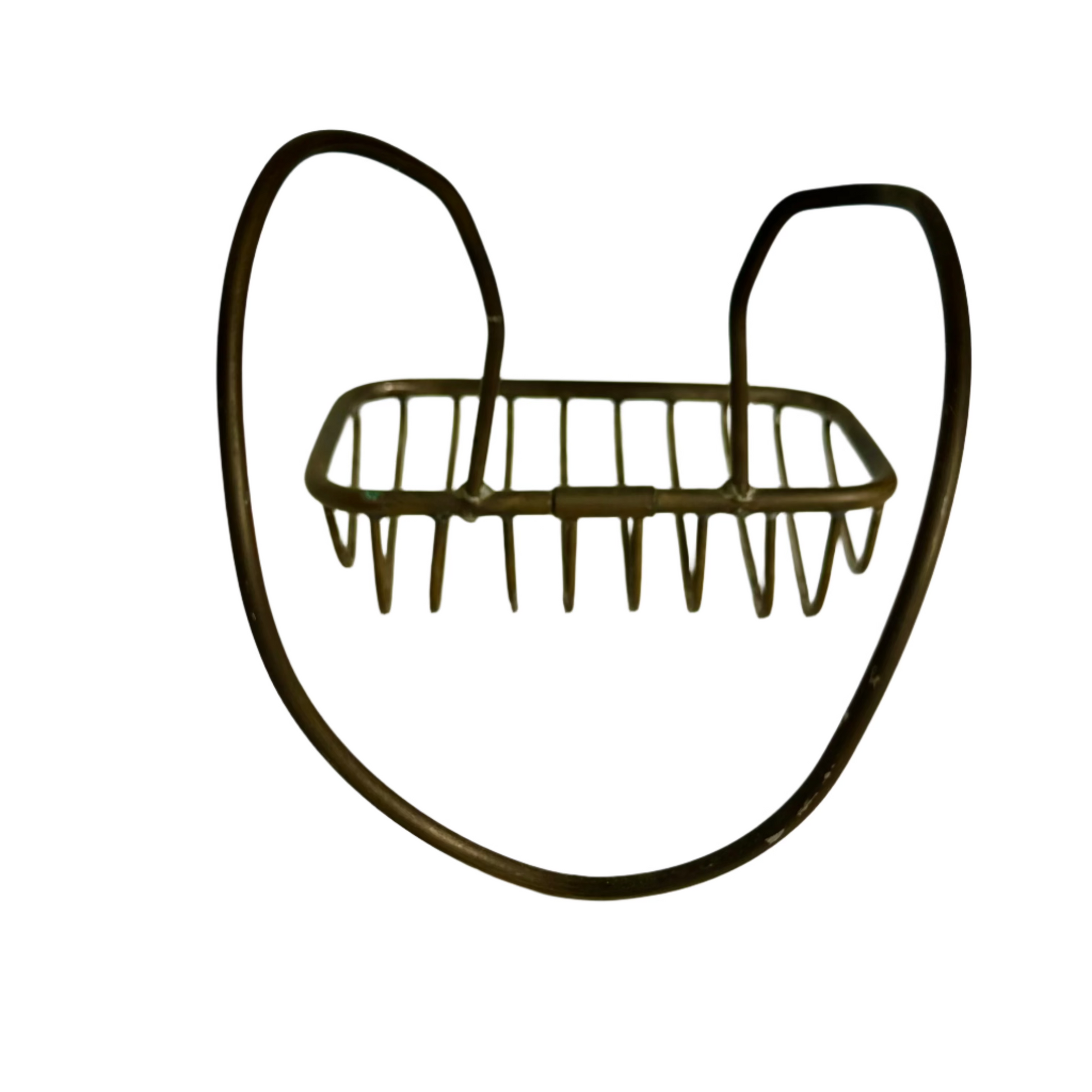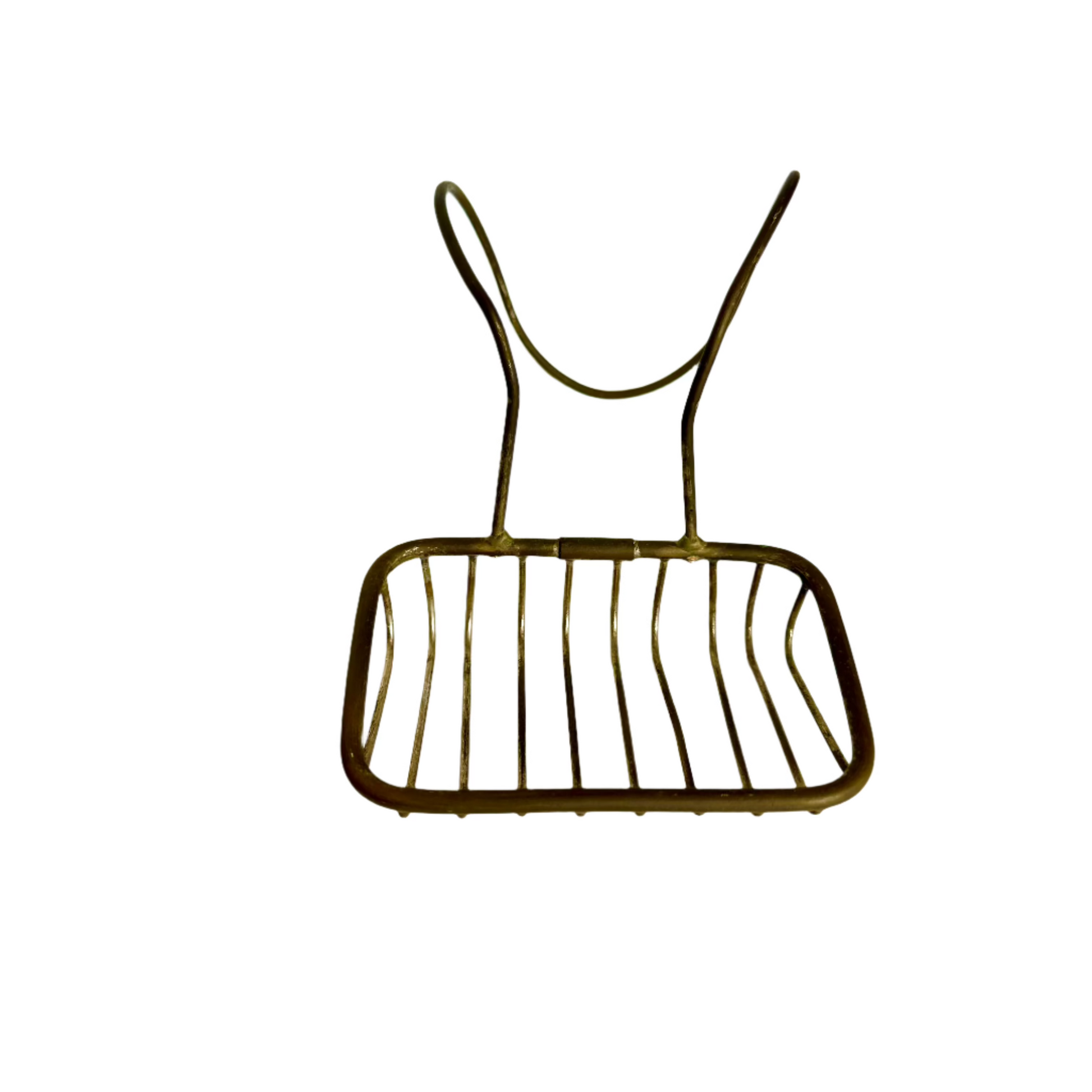 Meet your new favorite bathroom accessory: a genuine late-Victorian brass soap basket (circa 1890–1920) that simply hooks over the rim of your tub and gives your daily routine a dash of old-school charm. Crafted from solid brass wire and left with its mellow honey patina intact, it drains water beautifully so your soap stays firm and lasts longer. Compact enough for any bath—around 5″ wide and 3″ deep—this little basket was once a must-have in homes where soaking was as much about relaxation as getting clean. Originals like this are hard to find (most got swapped for chrome in the 1930s–’40s).