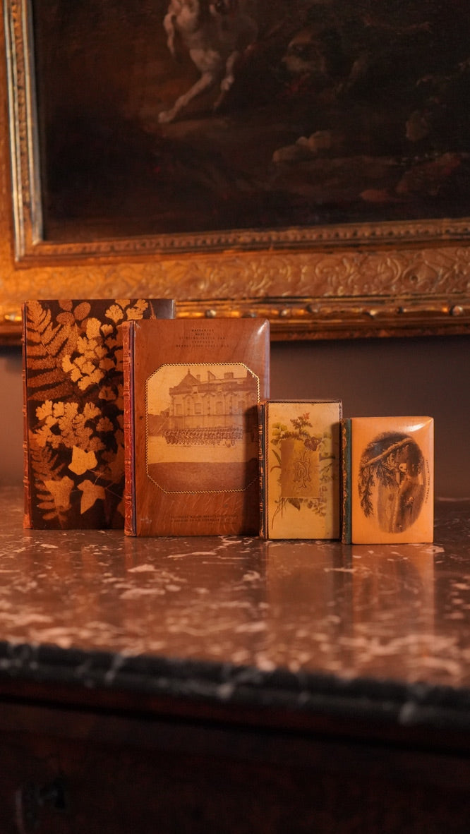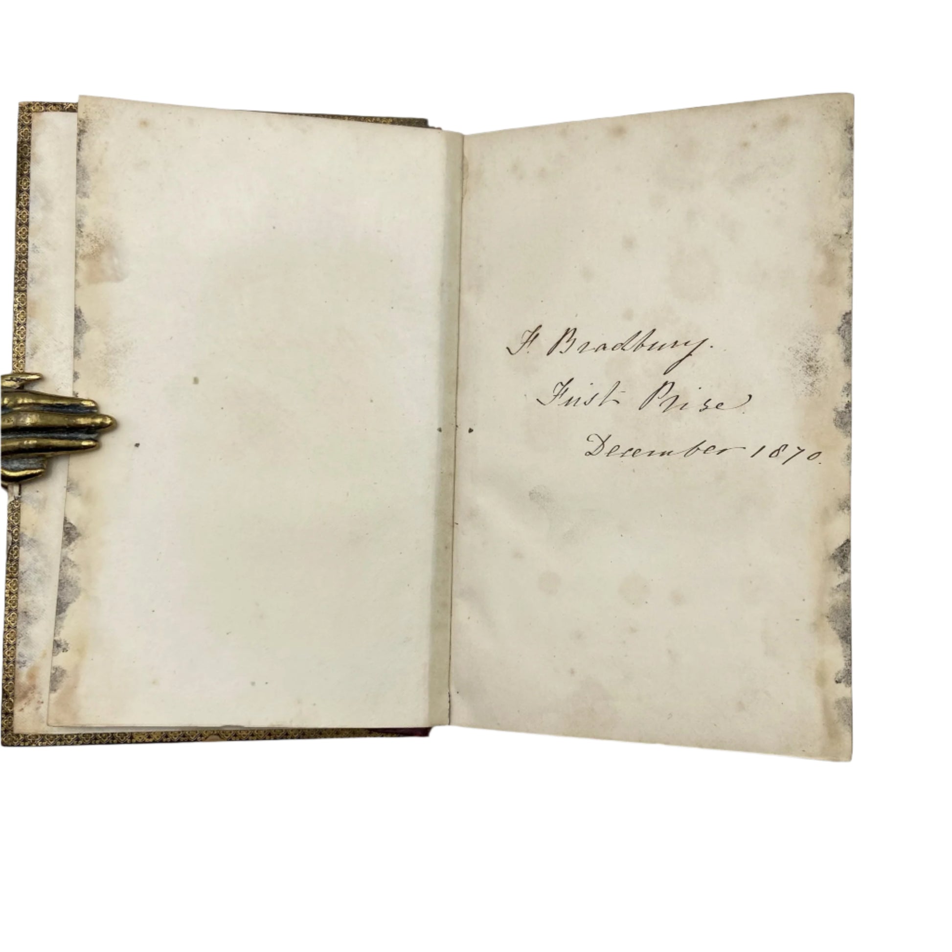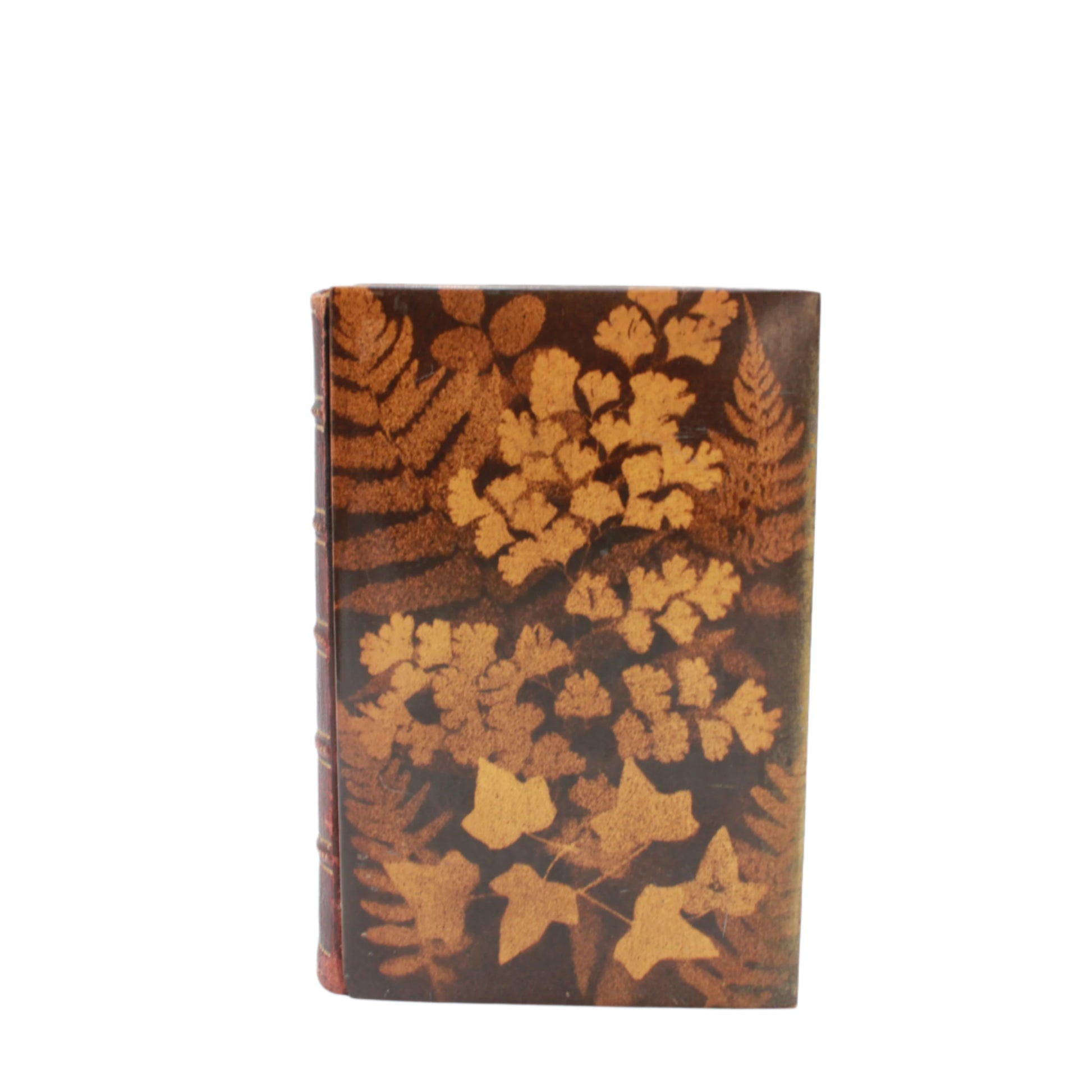 Published in 1849 by T. Nelson and Sons, this collection brings together Sir Walter Scott's celebrated narrative poems—including The Lay of the Last Minstrel, Marmion, and The Lady of the Lake—plus additional verses and a biographical sketch. Scott's work, penned during the Romantic period, masterfully blends adventure and emotion with deep affection for Scottish heritage and landscape. What truly sets this edition apart is its exquisite Mauchline binding, featuring gilt-embossed fern and ivy designs on leather boards with a gilt-tooled spine and gilded page edges. This lavish presentation style was favored by Victorian collectors who treasured both the artistry of fine bookbinding and the timeless poetry within. Scott's verses remain captivating tales of chivalry, history, and romance that shaped how generations imagined Scotland.