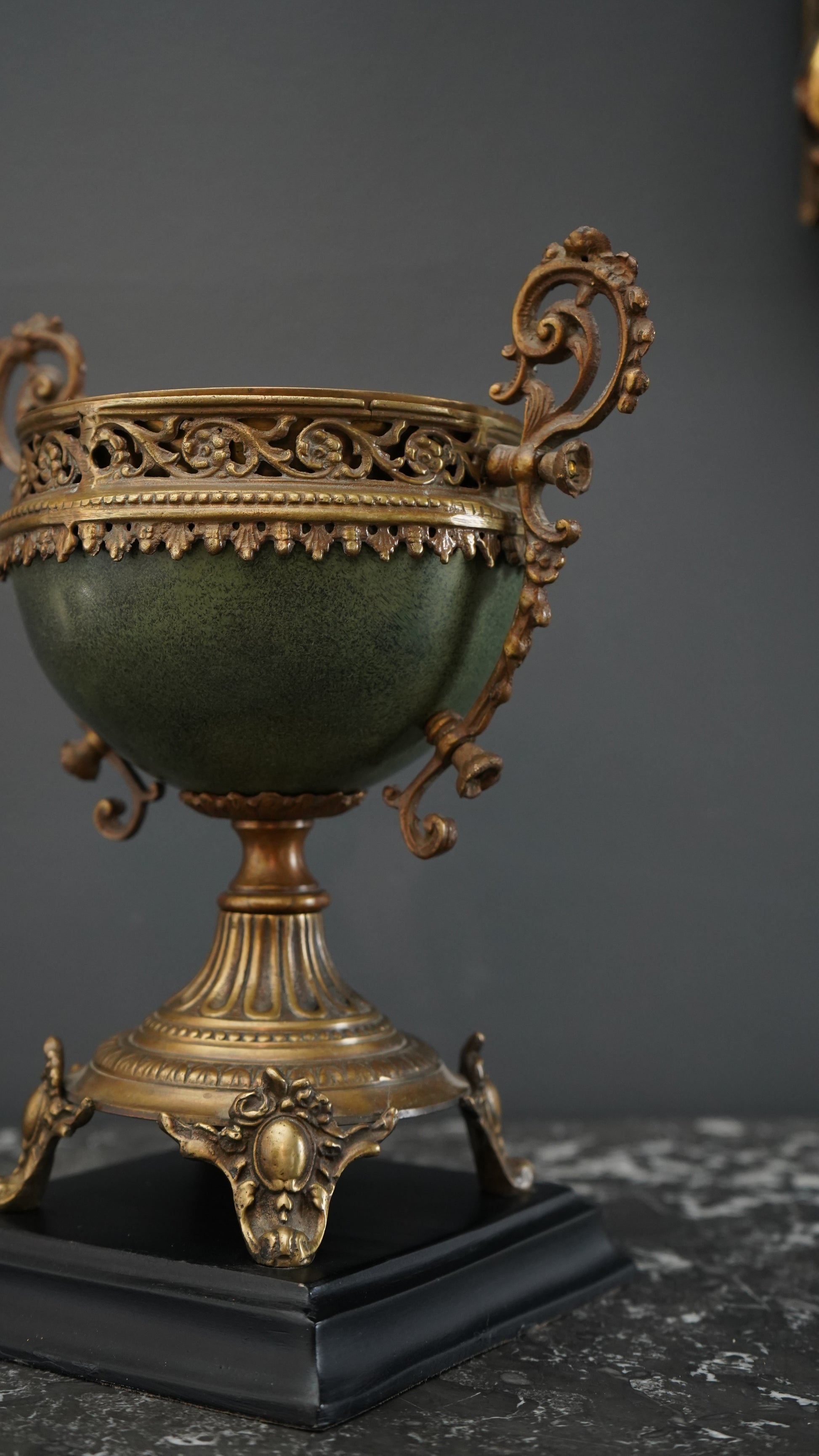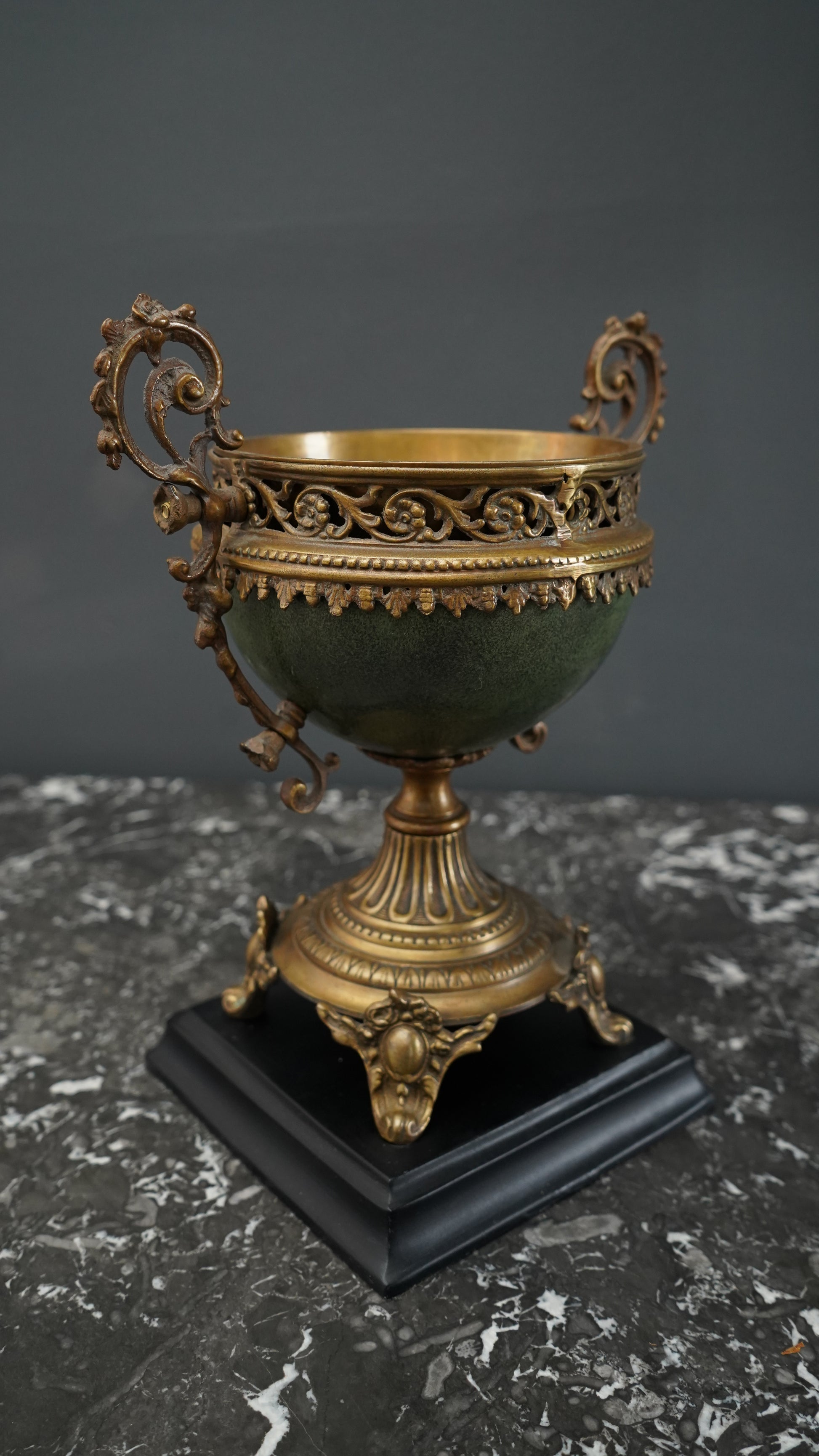 Vintage Neoclassical Decorative Urn with Faux Malachite Bowl and Gilt Metal Mounts