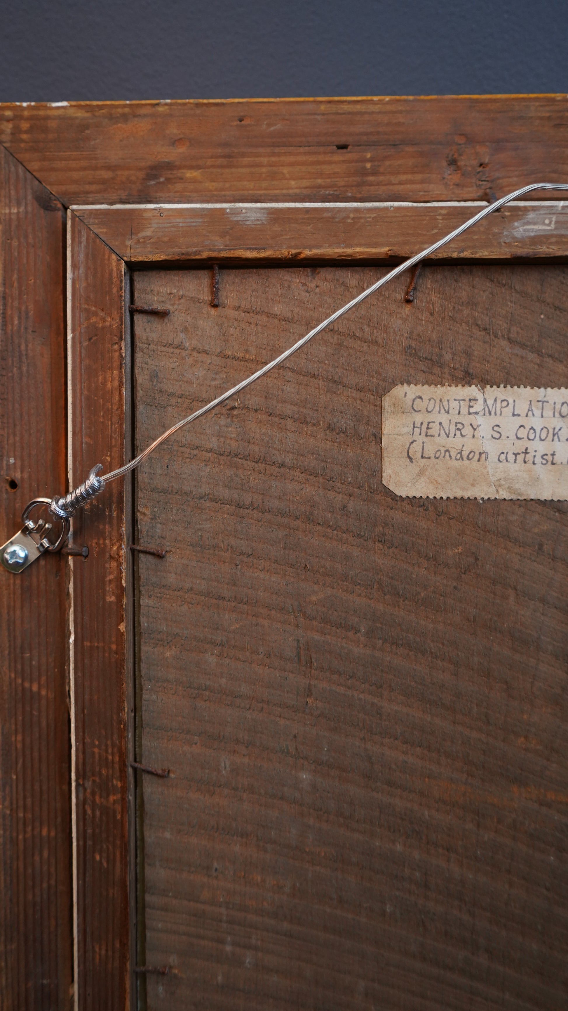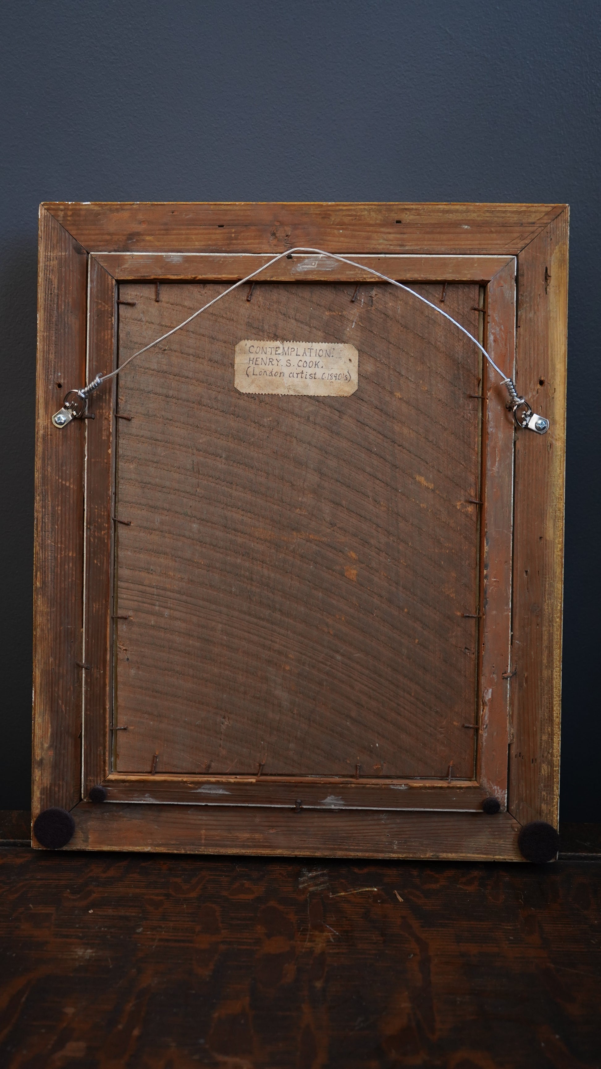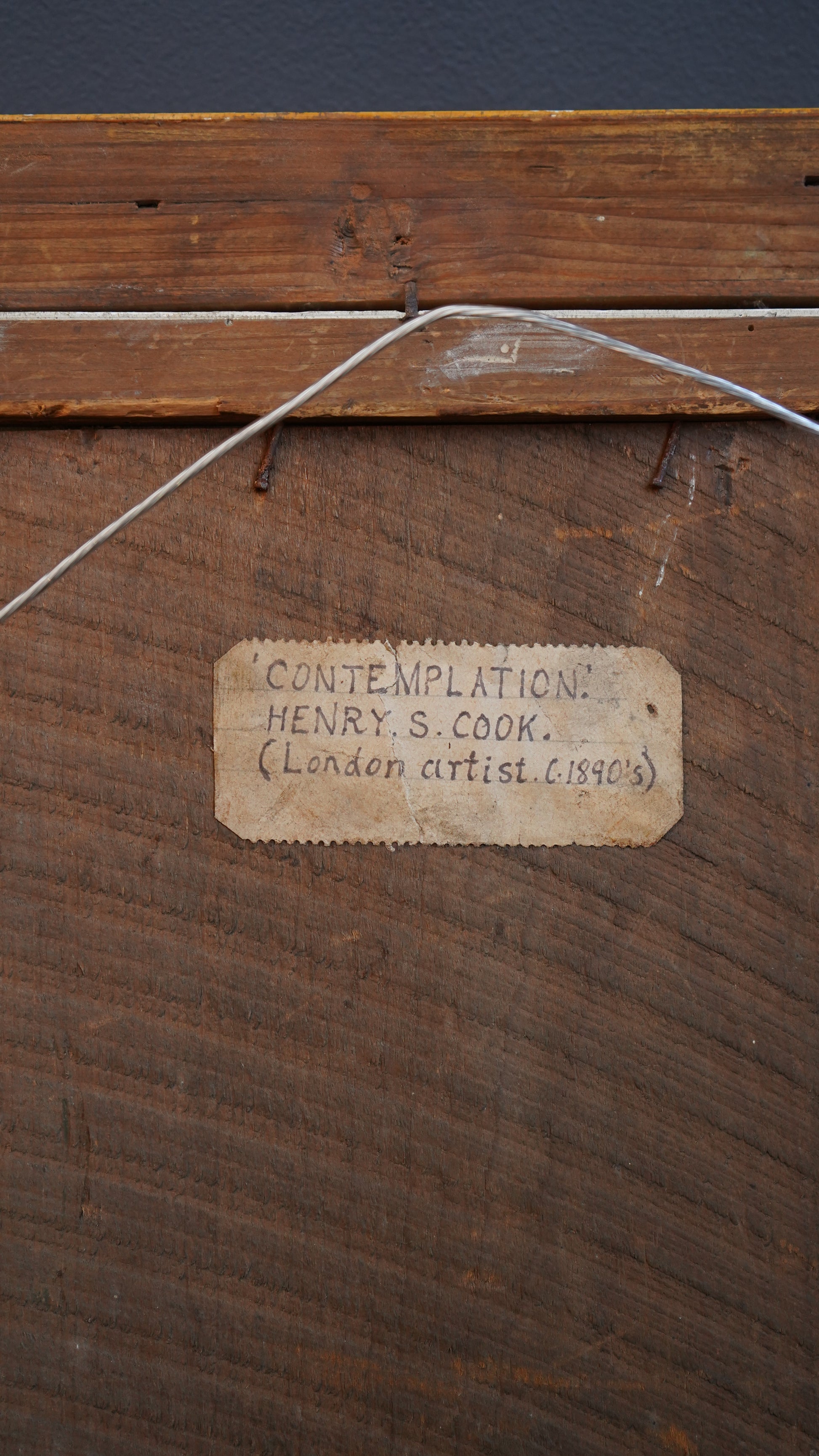 Contemplation by Henry S. Cook | Antique Victorian Oil on Board Painting | English Genre Revival Scene, c.1890s