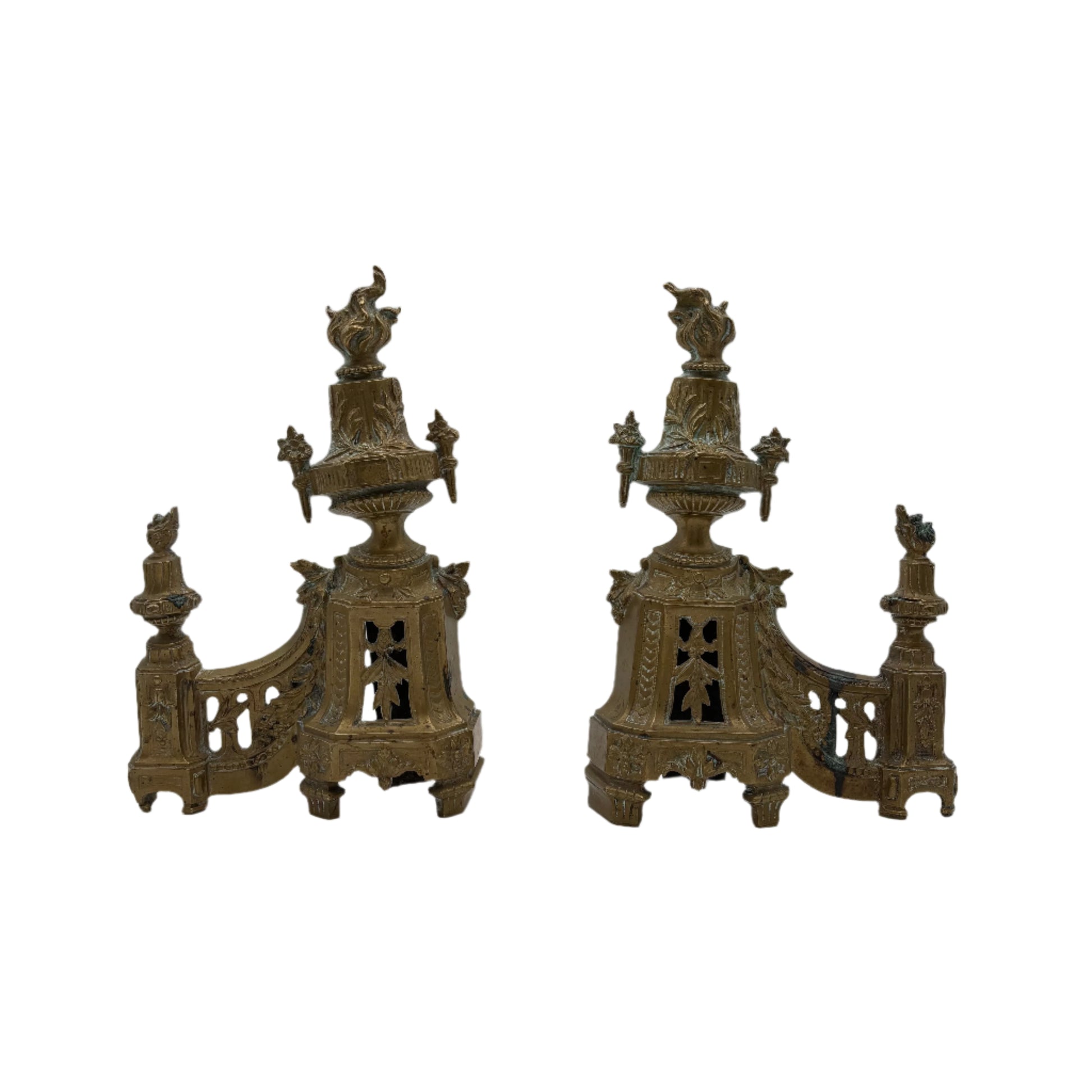 These antique andirons were likely crafted during the Belle Époque or early Edwardian period, when the revival of classical design was at its peak in both Europe and America.