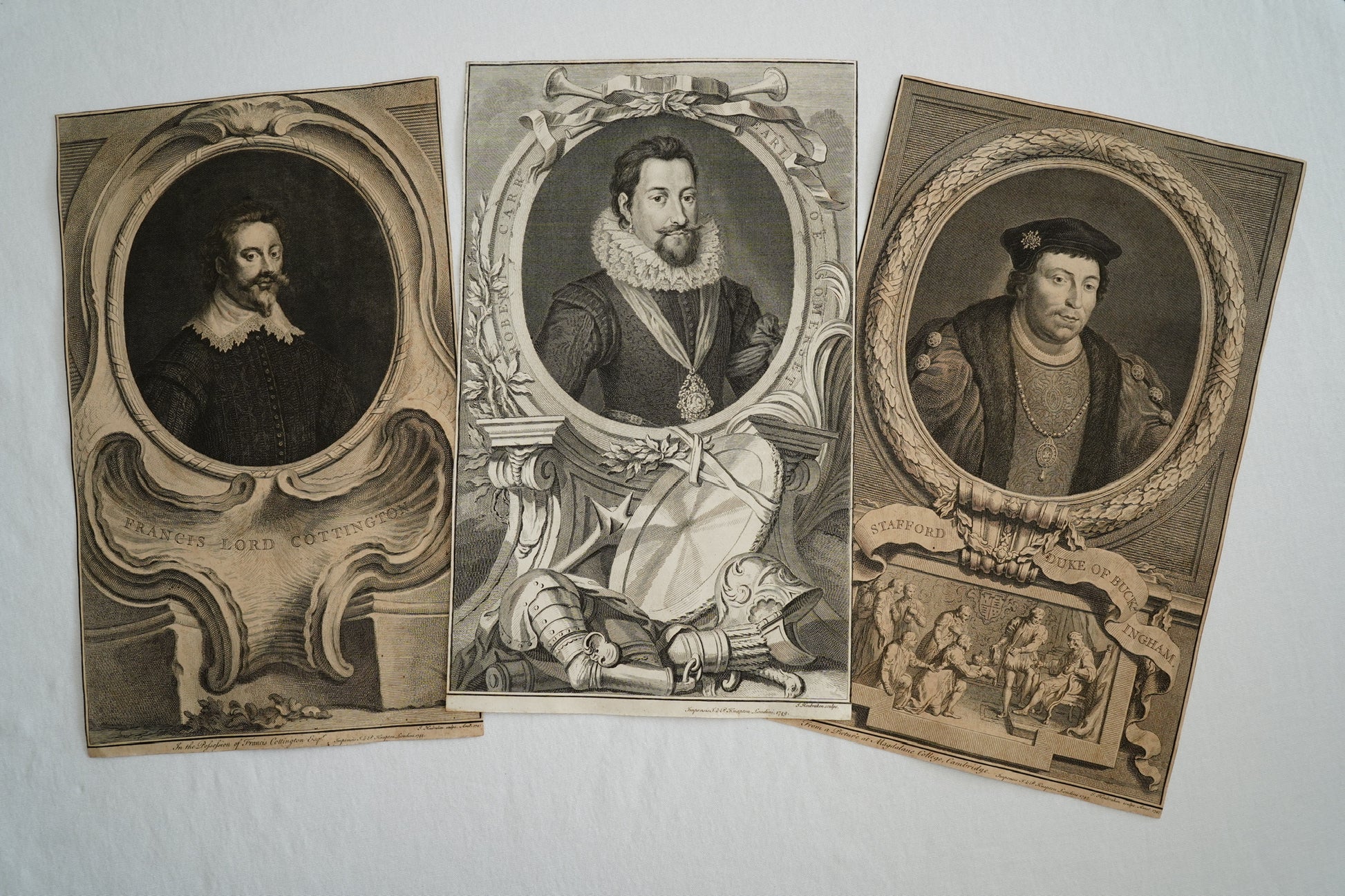Jacobus Houbraken (1698-1780) was a Dutch engraver, apprenticed under his father, Arnold Houbraken (1660-1719). Houbraken’s style was similar to the portrait engravers of the great seventeenth century French school, most notably, Nanteuil, Drevet and Edelinck. He surpassed these masters in his ability to capture textures and tones. The Italian engraver, Raphael Morghen said, “No engraver has ever equalled, and probably will not equal, the Dutchman Jacobus Houbraken, in the manner of imitating the flesh and the hair by means of the graver.” He was sought after by both English and Dutch publishers. His most famous engravings for English publication were those for the historical series, "The Heads of Illustrious Persons of Great Britain", published in parts in London between 1734 and 1752. He worked alongside George Vertue (1684-1756), but most of the great portrayals were left to Houbraken, including those of Newton, Pope, Dryden, Shakespeare and Milton. Under the framed portrait of each individual, he designed and engraved the vignettes and objects associated with each person. Jacobus Houbraken's most important set of original portrait engravings, The Heads of Illustrious Persons of Great Britain, required almost twenty years to complete. The set contains one hundred and eight portraits of British luminaries dating from the 14th to early 18th centuries including Kings, Queens, noblemen, politicians, writers, scientists and philosophers.