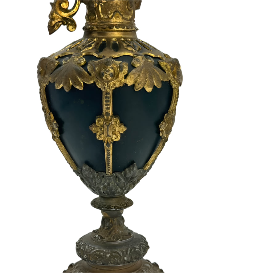 French Baroque Style Gilt Metal & Porcelain Ewer