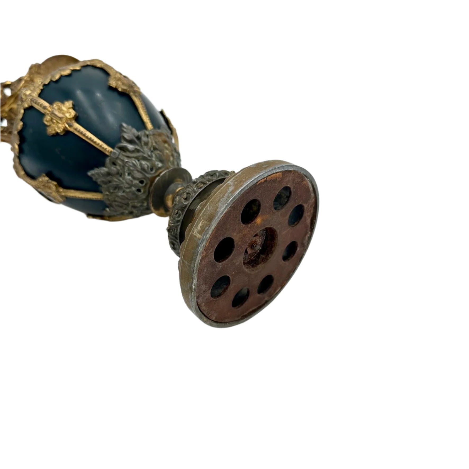 Patina throughout the gilded metal due to normal age-related wear.