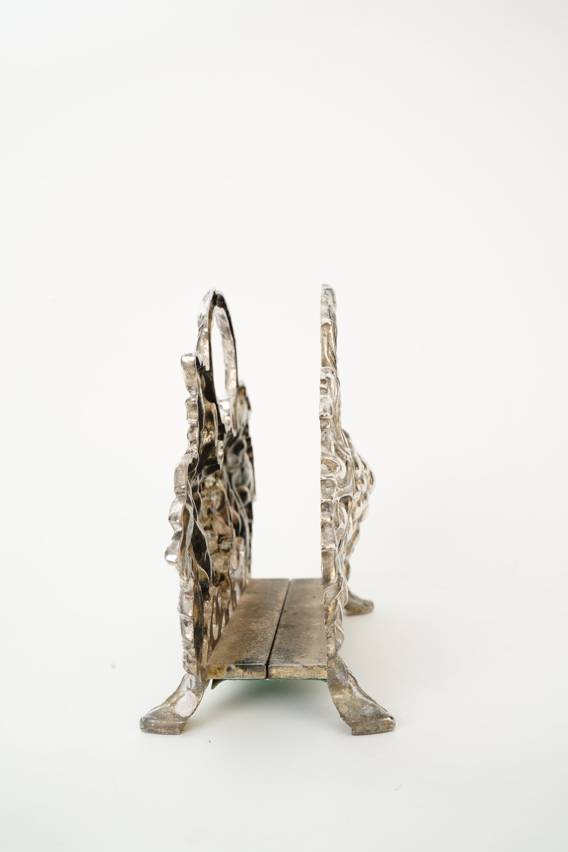 Designed as a napkin holder, it also works perfectly as a letter or mail holder on a desk or entry table. A great accent for harvest season decor, wine lovers, and anyone who likes traditional silver plate details with real visual texture.
