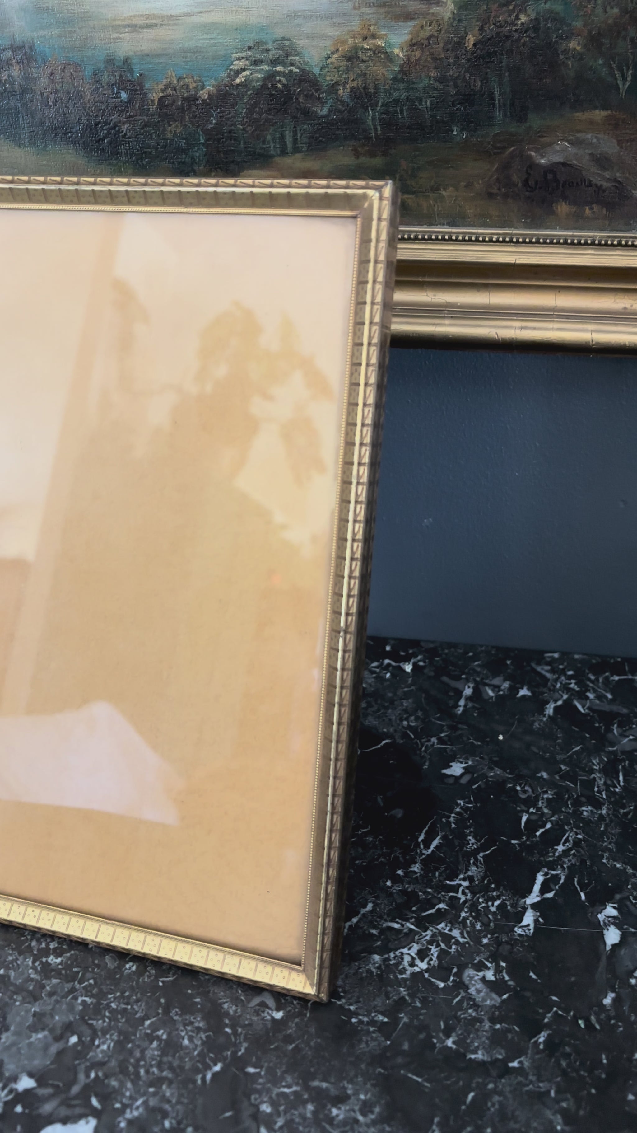 Gold Plated Picture Frame with Geometric Border | Vintage Brass Picture Frame