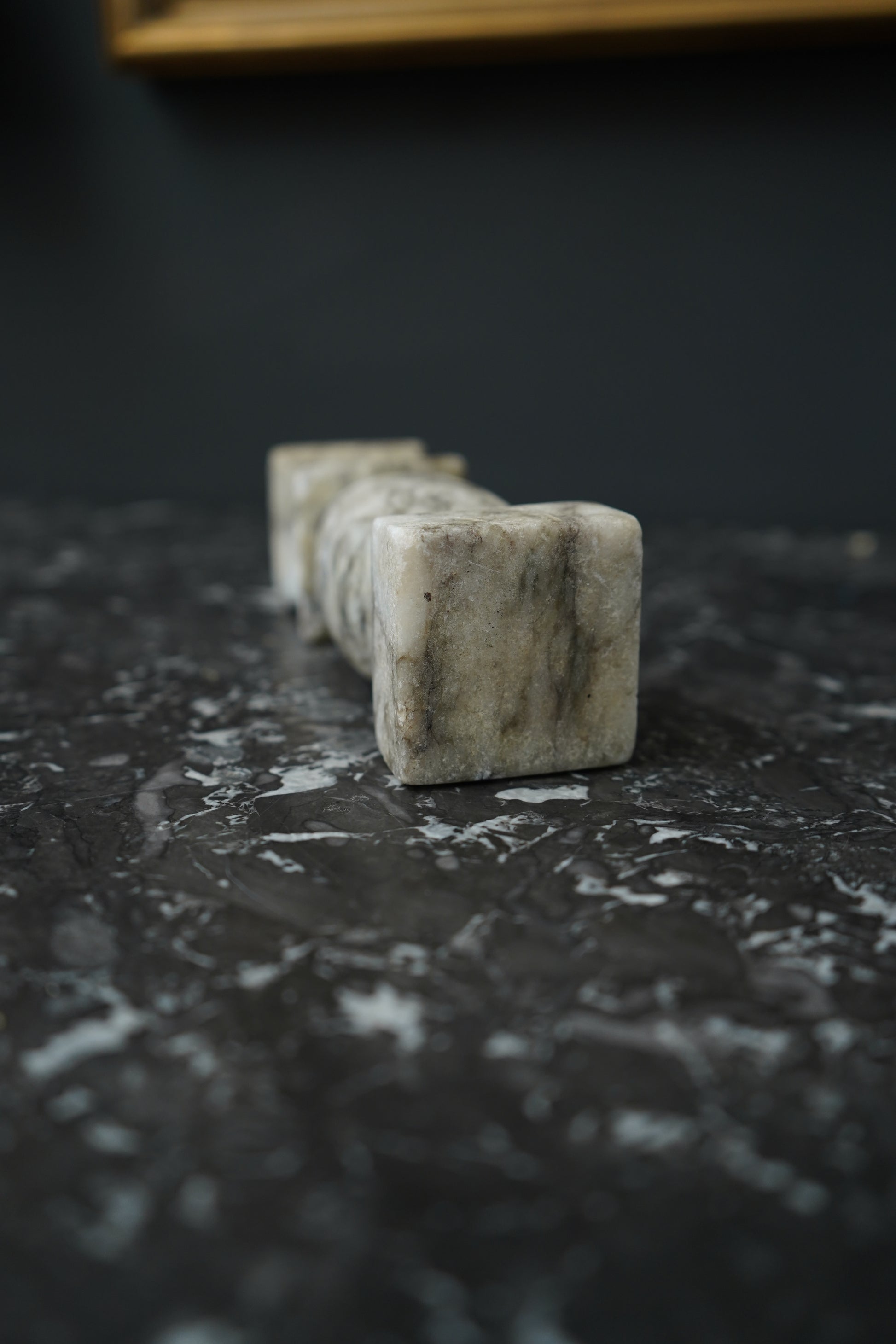 Made from unsealed Carrara marble, its natural matte finish and subtle gray veining give it a refined, understated beauty. The minimal silhouette and cool stone texture make it a timeless accent suitable for classical, mid-century, or modern interiors.