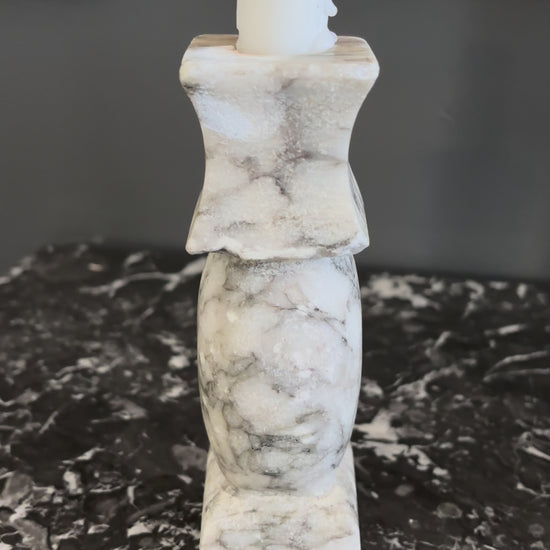 Vintage Italian Carrara Marble Candlestick Holder, Hand-Carved Stone Candle Holder