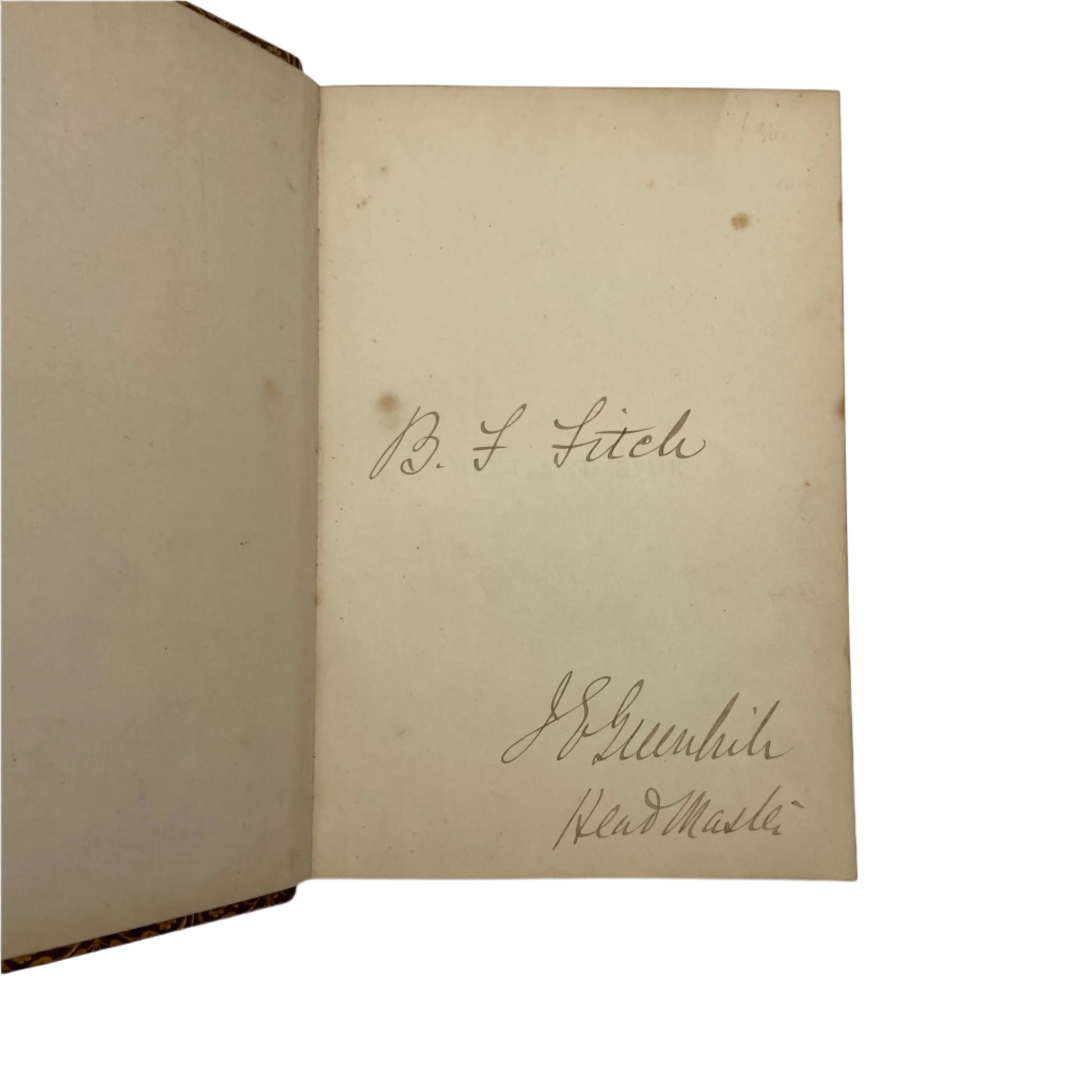 This book is in solid and attractive condition for its age. The leather shows light surface rubbing and some wear to the corners and spine ends, with small areas of fraying and softening near the headcap. The gilt on the spine and covers remains bright and well-defined. Internally, the pages are clean with only light age-related toning and minimal foxing. The marbled endpapers and edges are vibrant and well preserved. The binding remains tight and square, and the presentation inscription is clearly legible. A well-kept and visually stunning example of a late 19th-century school prize book.