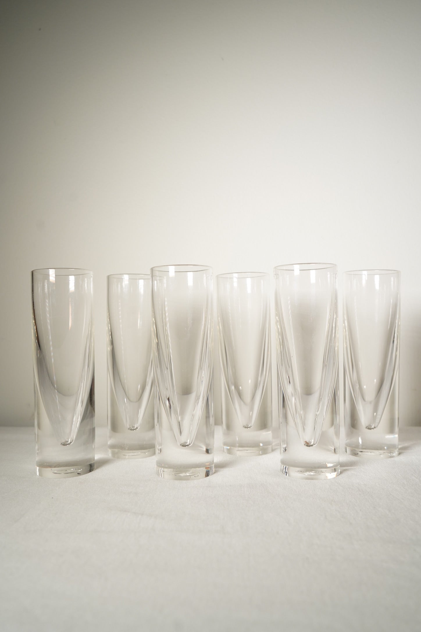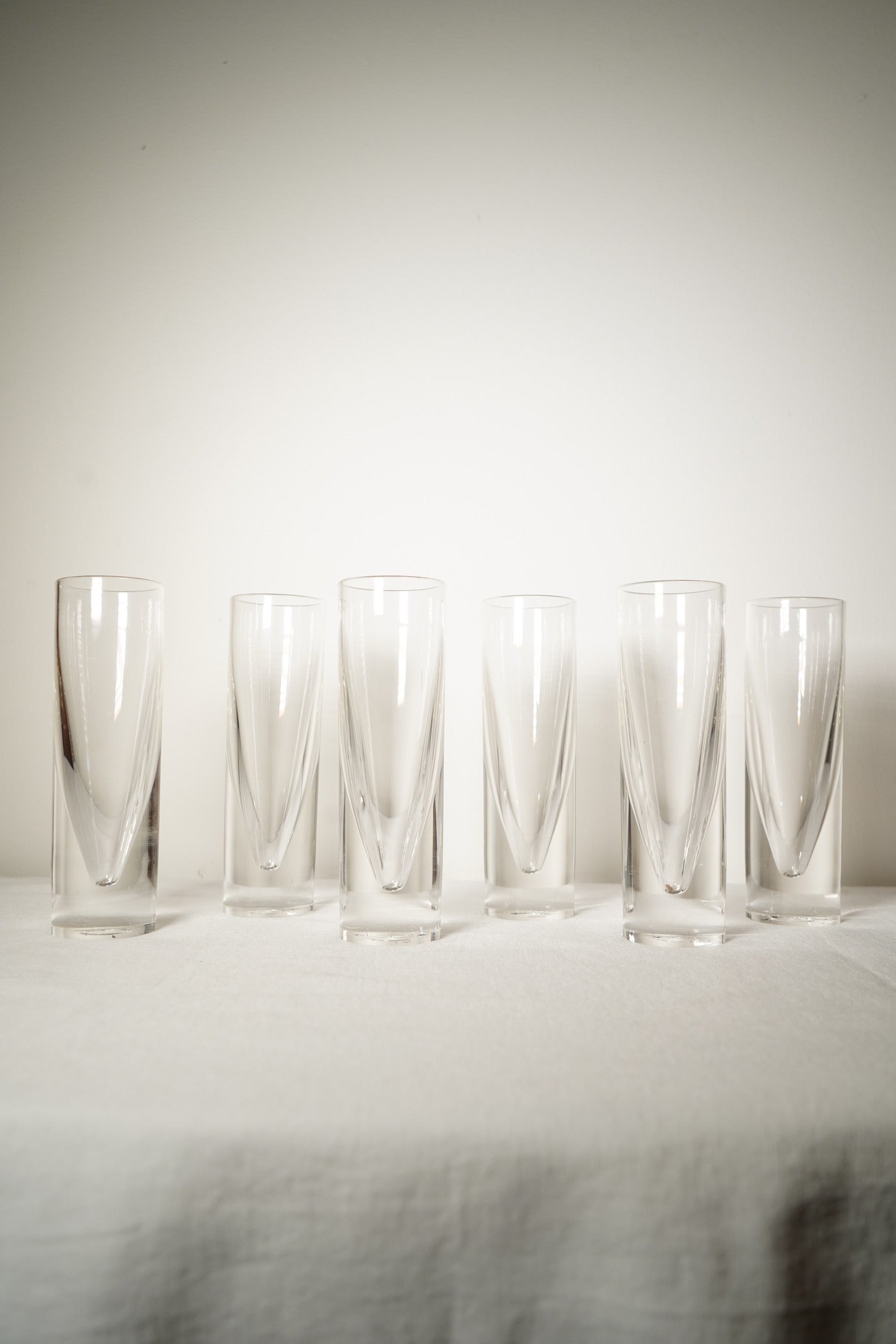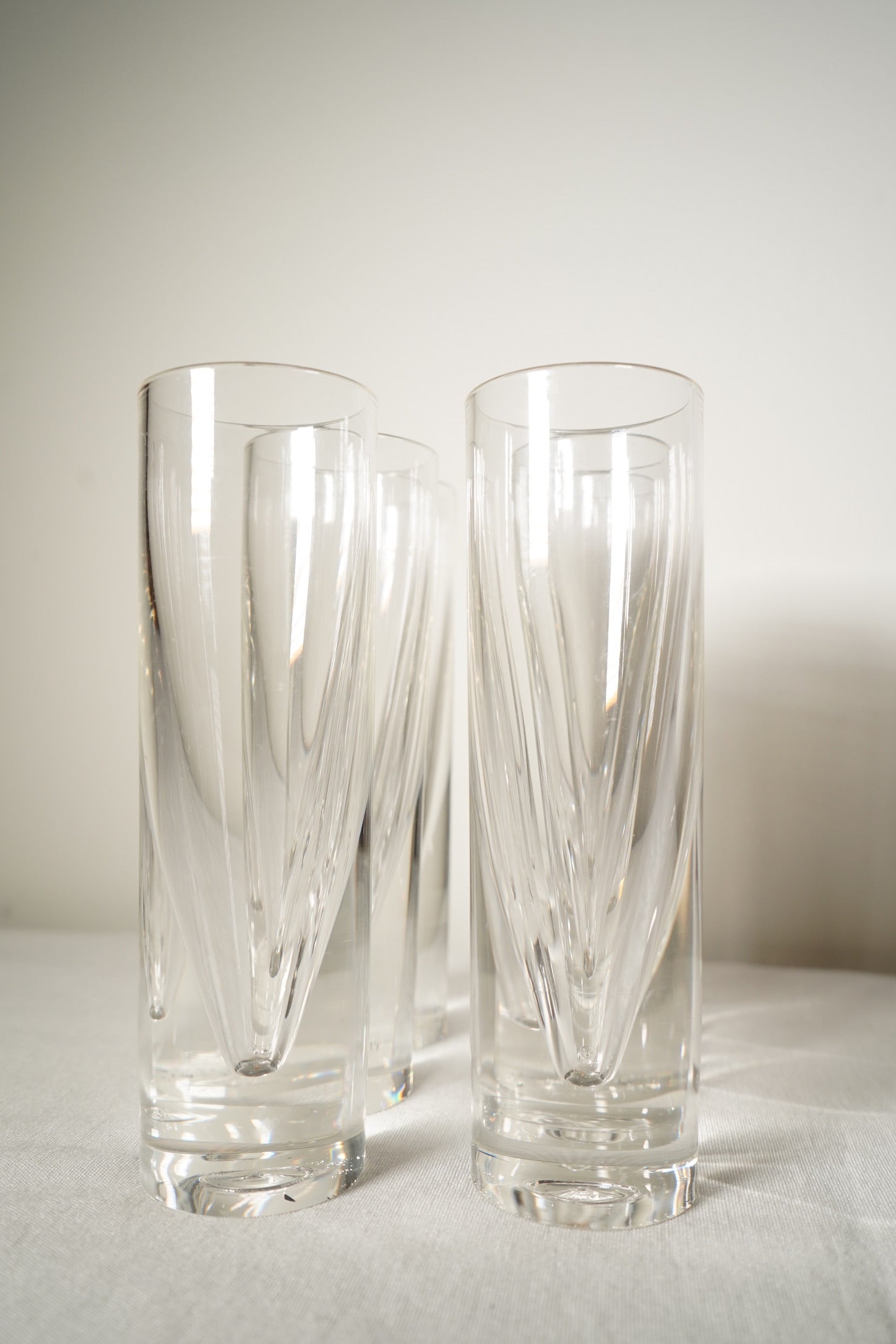 Lucite barware became a hallmark of sophisticated entertaining during the 1970s and 1980s. It offered the clarity of glass with a lighter weight and greater durability, making it ideal for indoor and outdoor use. These tumblers are a perfect example of that era's interest in futuristic materials and sculptural simplicity. They feel crisp, modern, and elegant while still reading as vintage. The seven inch height gives them a refined, elongated profile that works well for cocktails, sparkling water, and mixed drinks.