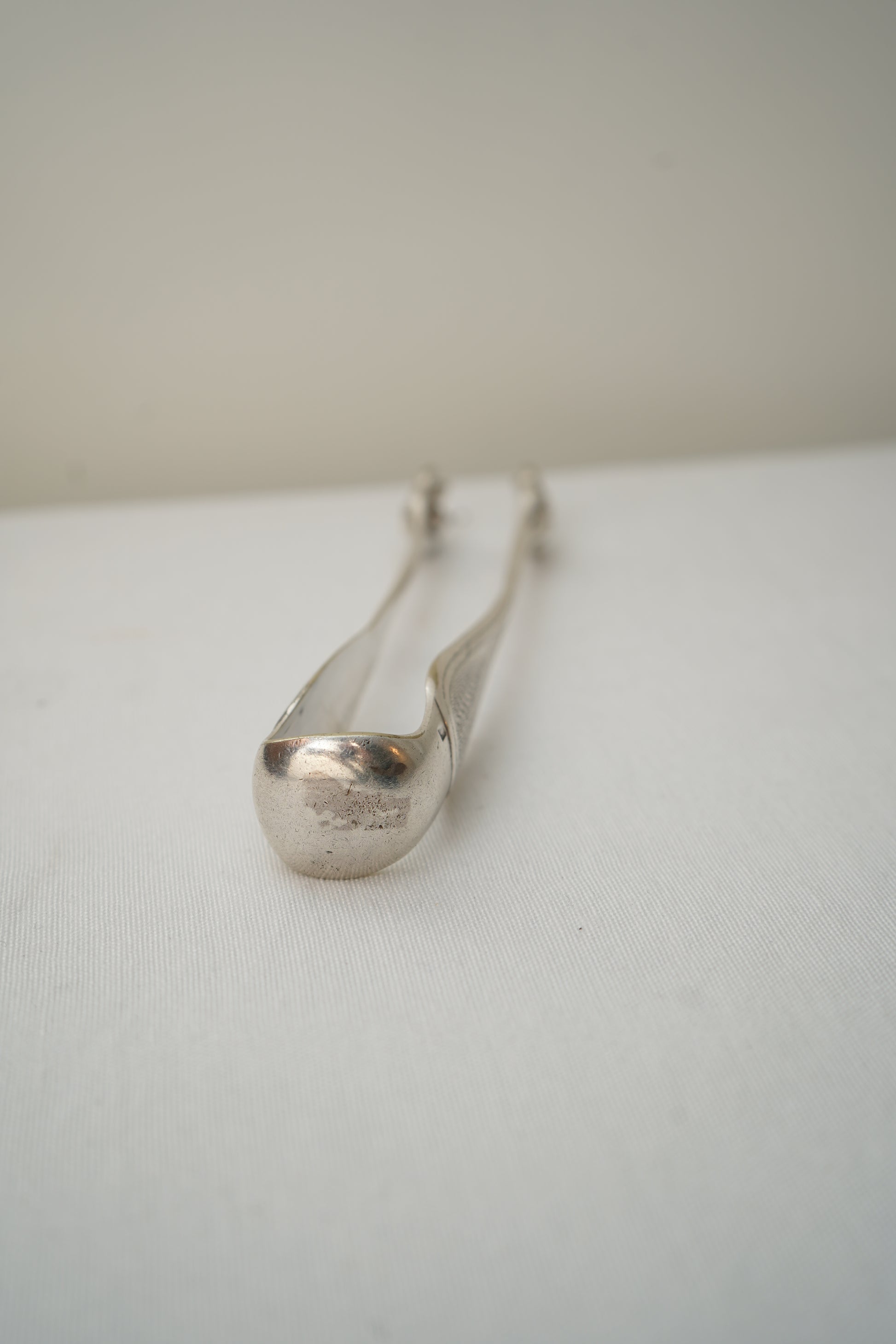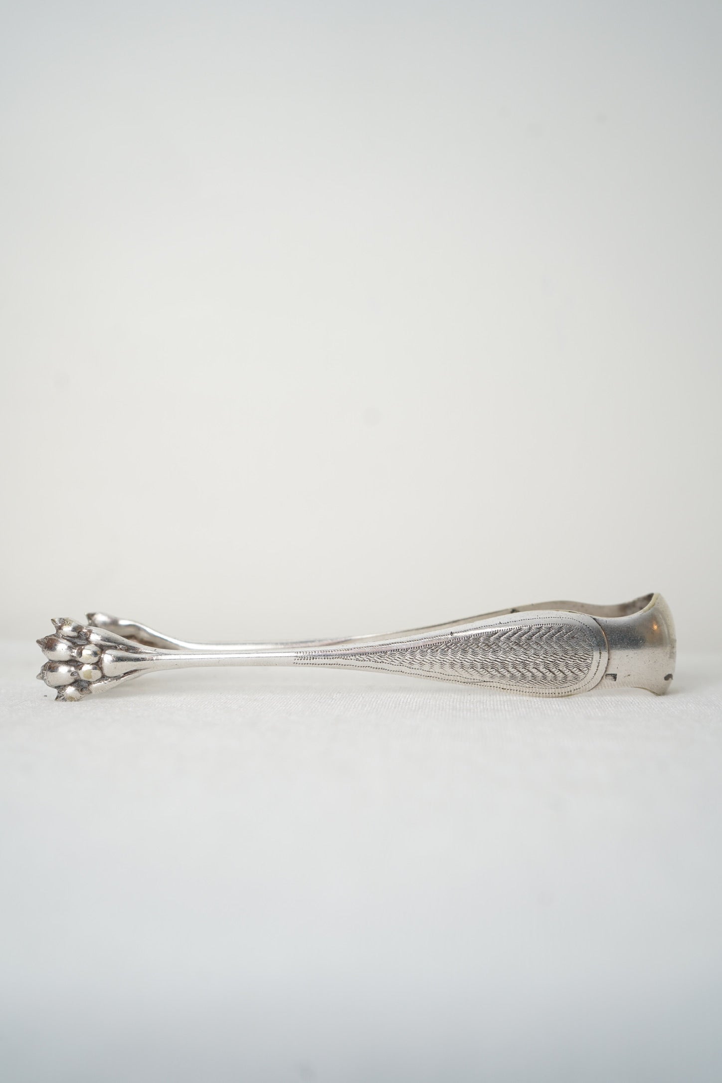 A charming piece of French table history, these antique sugar tongs bring that old-world tea service elegance to modern styling. Made in silver plate and stamped FRANCE, the design is elevated by crisp guilloché-style grip panels and sculptural paw feet terminals, a detail that nods to the Neoclassical and Louis XVI Revival taste that dominated well-appointed European tables.