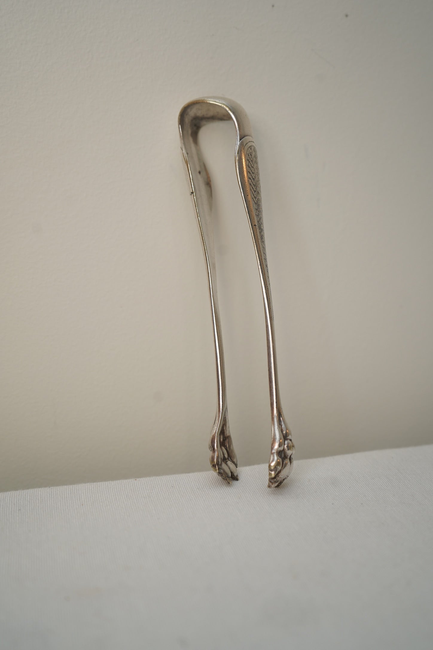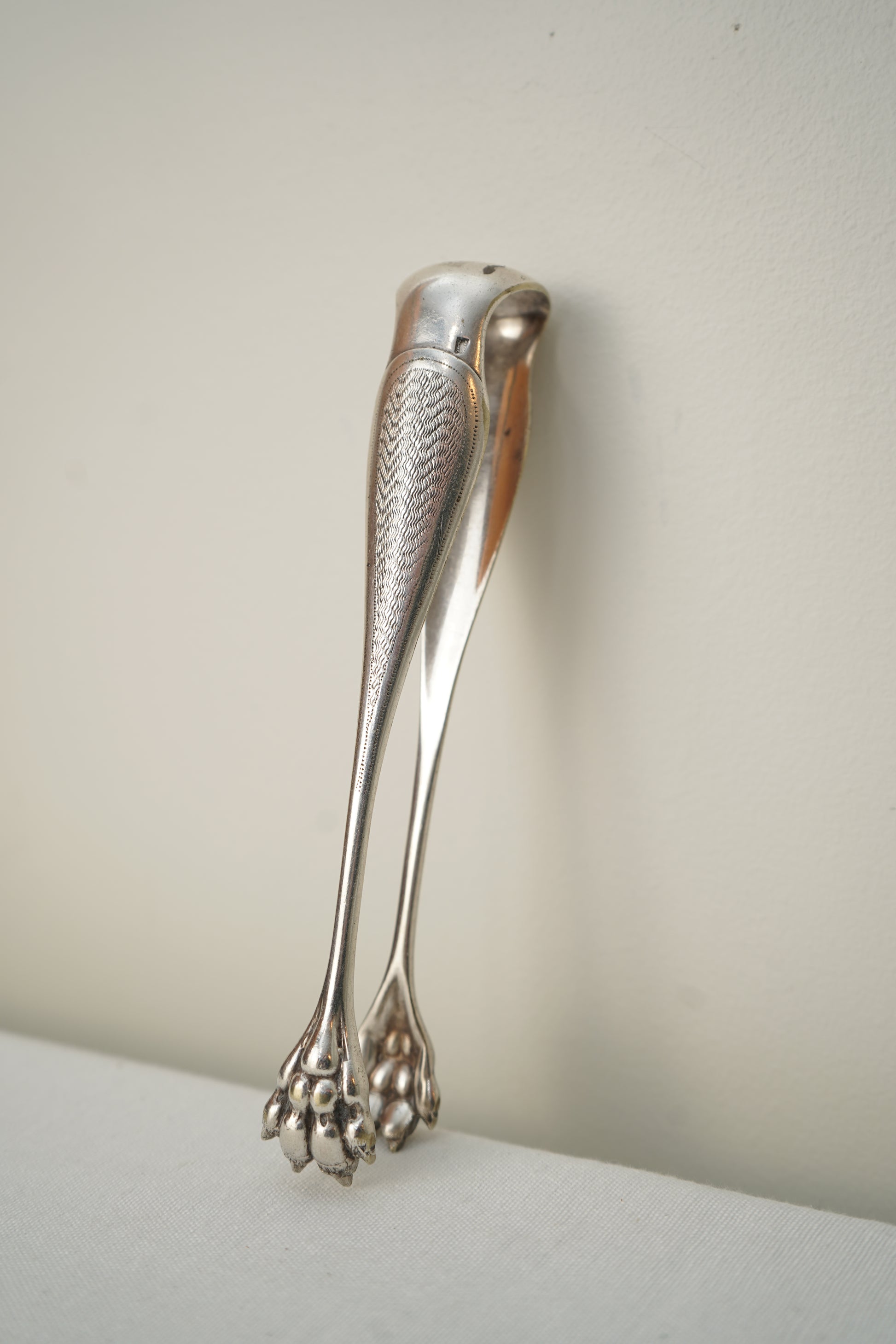 Antique French Silver Plate Sugar Tongs with Paw Feet, c. 1890–1930
