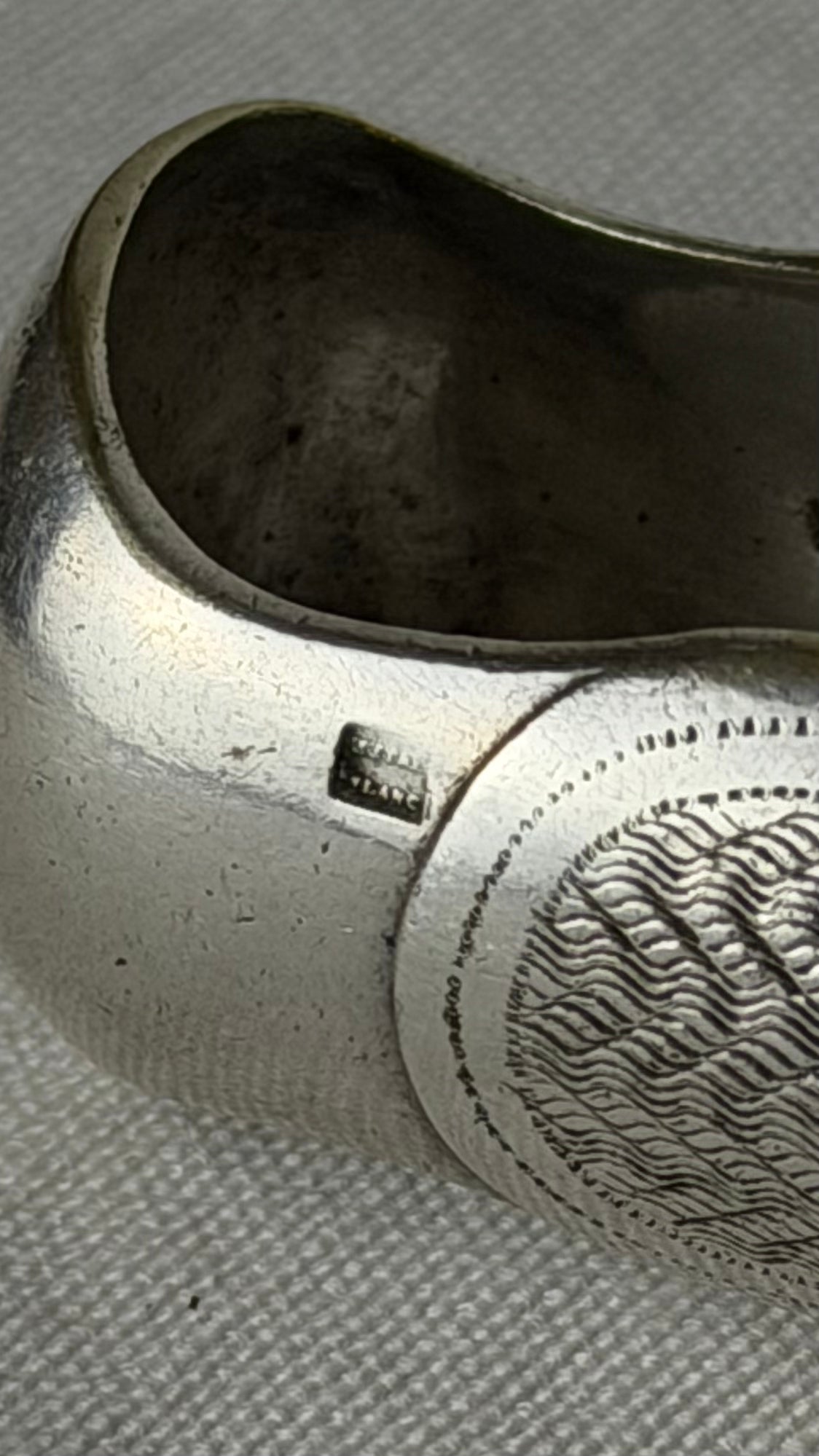 Silver plate with age-appropriate patina, spotting, and surface scratches throughout. Areas of darker tarnish and tonal variation consistent with age and use.