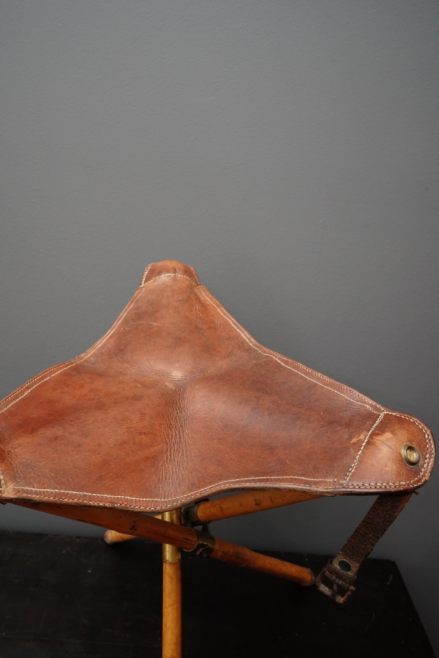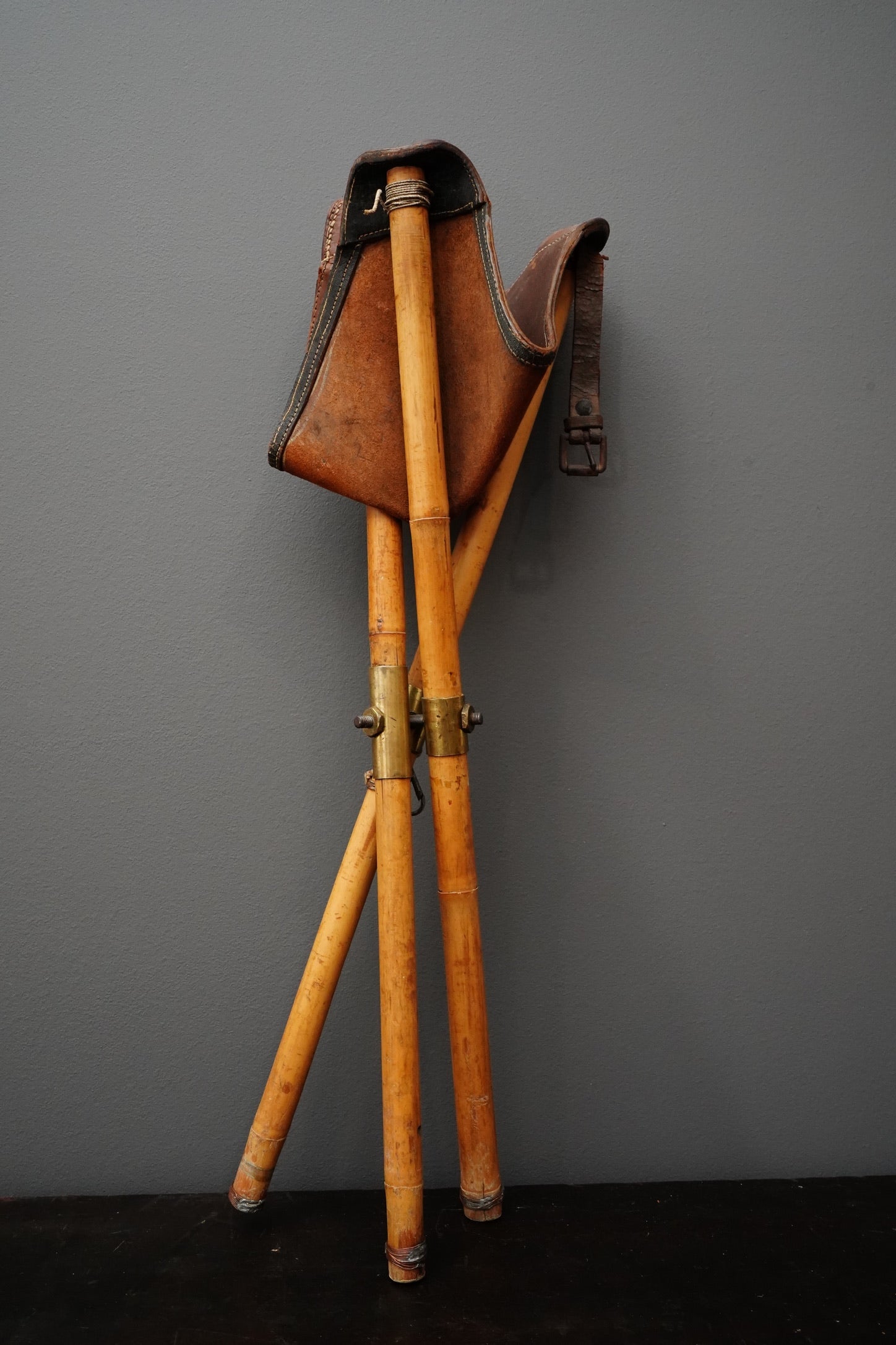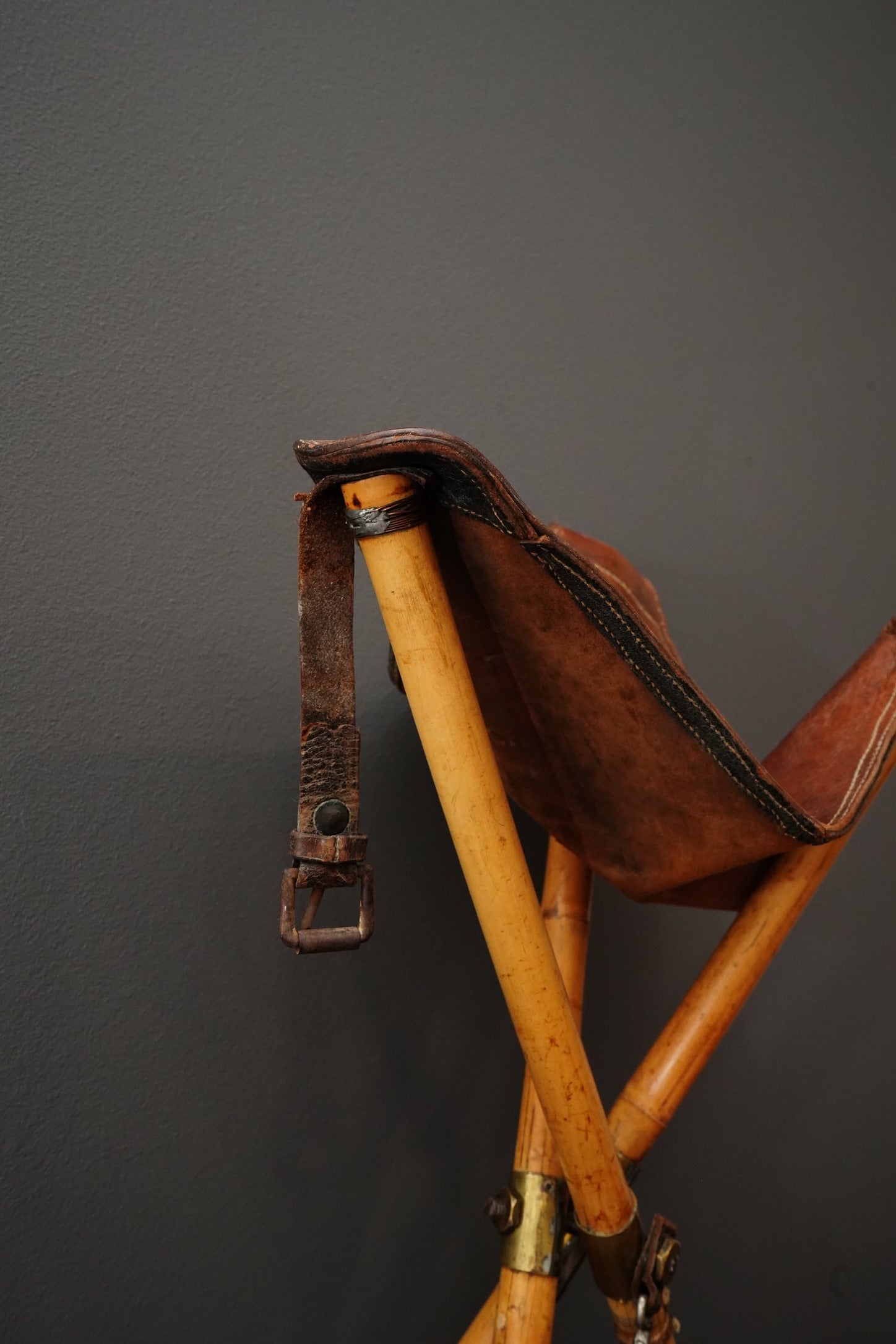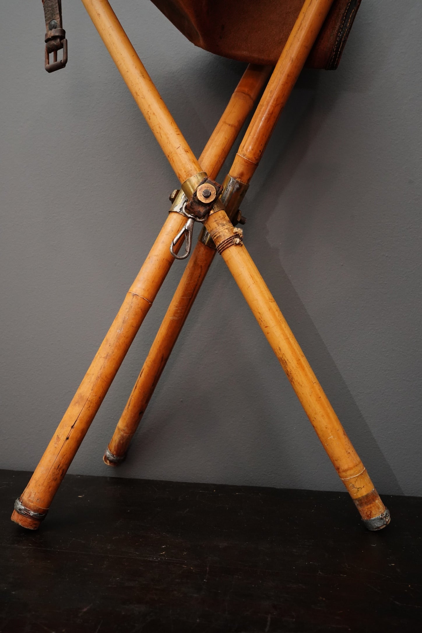 Vintage folding bamboo and leather artist’s stool